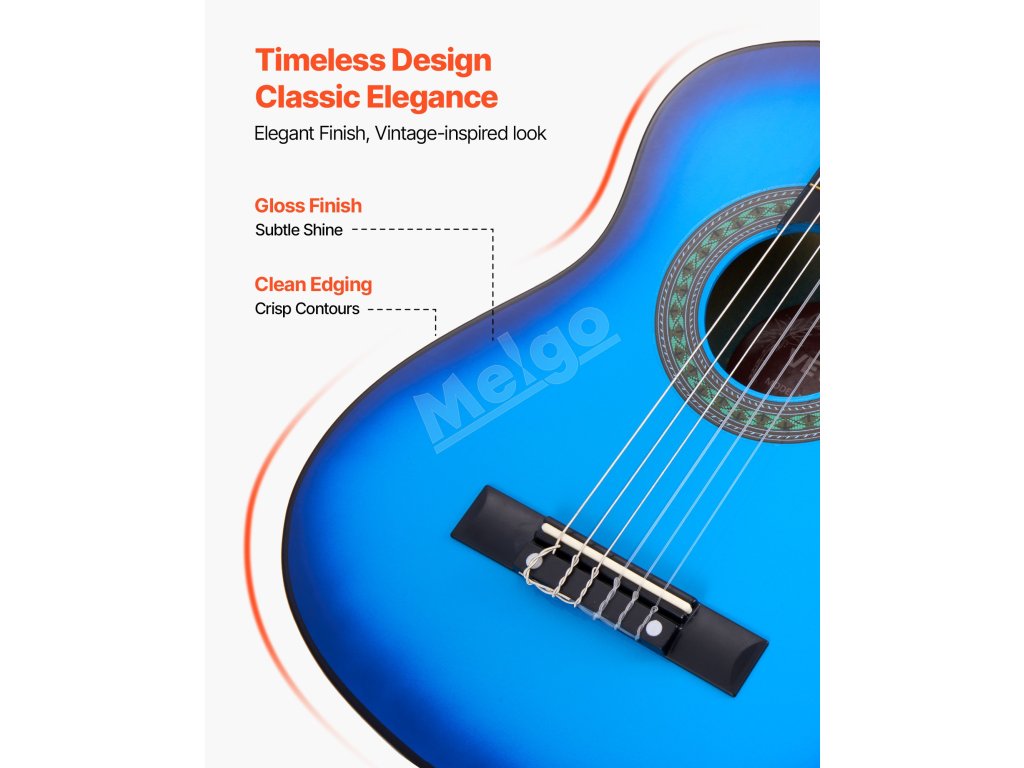 Táto klasická gitara je určená pre začiatočníkov a mladých hudobníkov a kombinuje ručne vyrobenú kvalitu s praktickými funkciami. Vďaka zadnej strane z masívneho dreva, nylonovým strunám a ladičke je hranie a ladenie hračkou. S gig bagom a ďalšími doplnkami obsahuje táto súprava všetko, čo potrebujete na začiatok svojej hudobnej cesty.