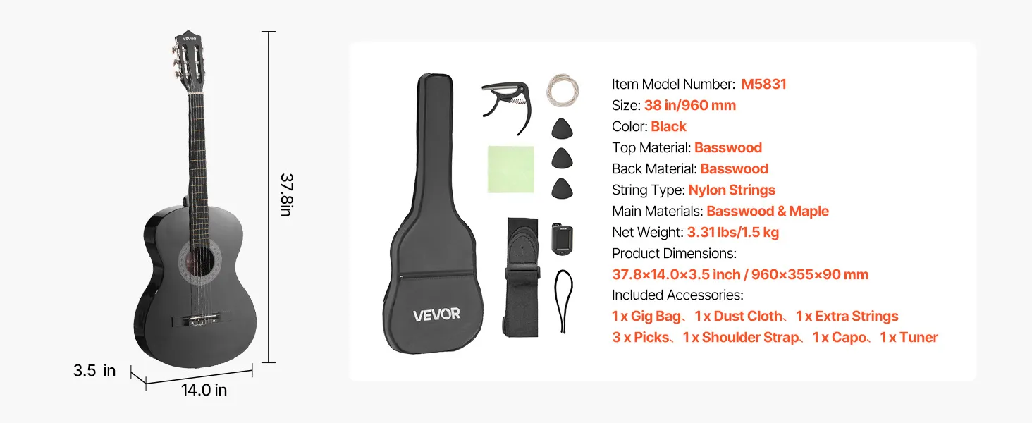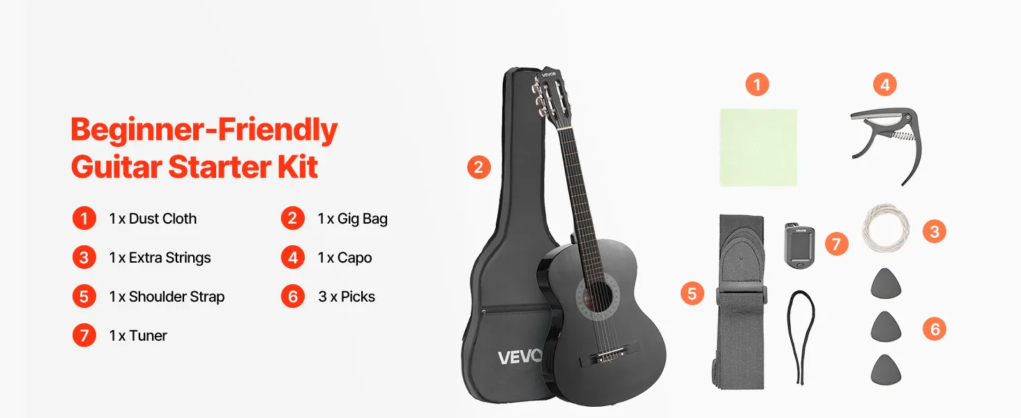 38-palcová súprava klasickej gitary pre začiatočníkov
