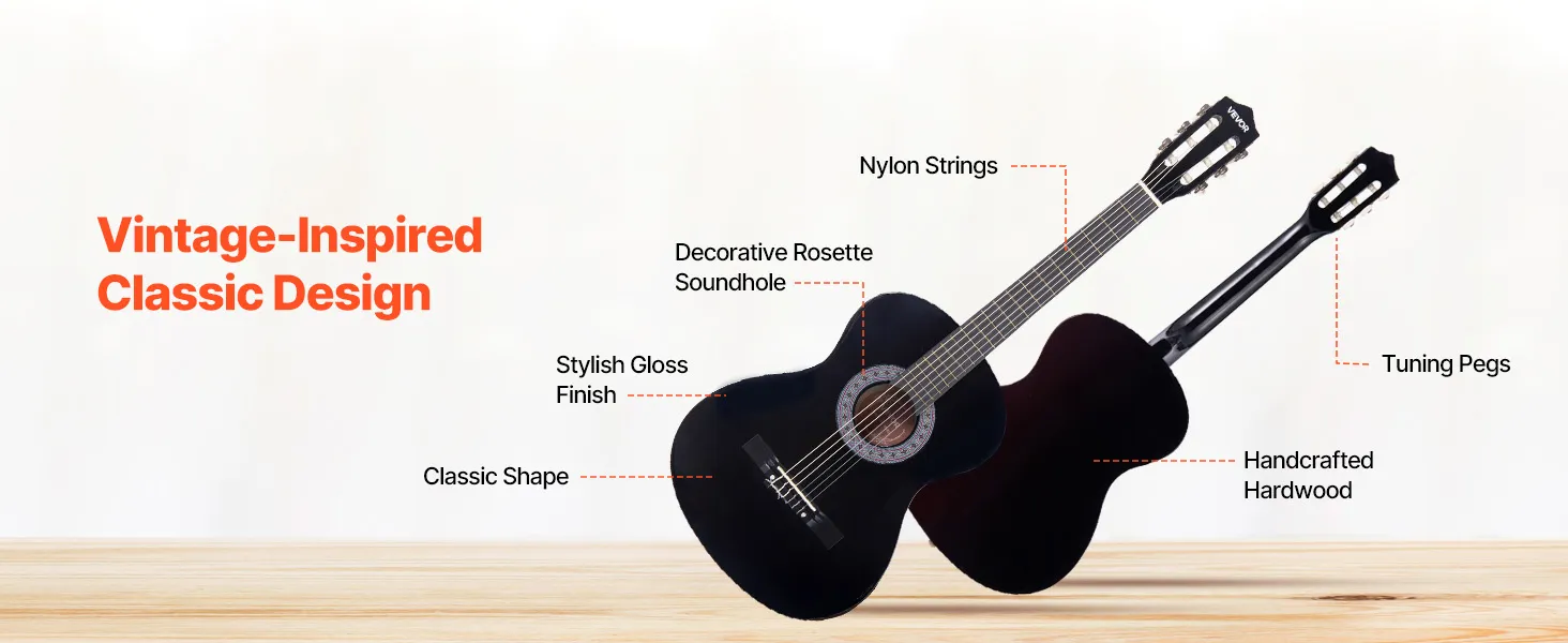 Táto klasická gitara, určená pre začiatočníkov a mladých hudobníkov, kombinuje ručne vyrobenú kvalitu s praktickými funkciami. Vďaka zadnej strane z masívneho dreva, nylonovým strunám a ladičke je hranie a ladenie hračkou. S gig bagom a ďalšími doplnkami obsahuje táto súprava všetko, čo potrebujete na začiatok svojej hudobnej cesty.
