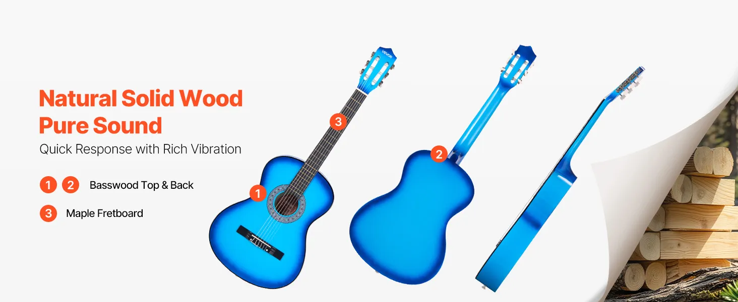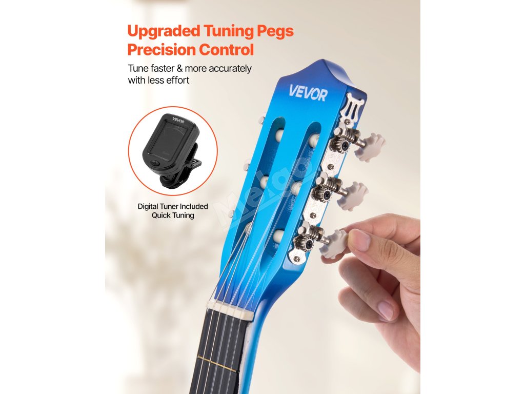 Táto klasická gitara je určená pre začiatočníkov a mladých hudobníkov a kombinuje ručne vyrobenú kvalitu s praktickými funkciami. Vďaka zadnej strane z masívneho dreva, nylonovým strunám a ladičke je hranie a ladenie hračkou. S gig bagom a ďalšími doplnkami obsahuje táto súprava všetko, čo potrebujete na začiatok svojej hudobnej cesty.