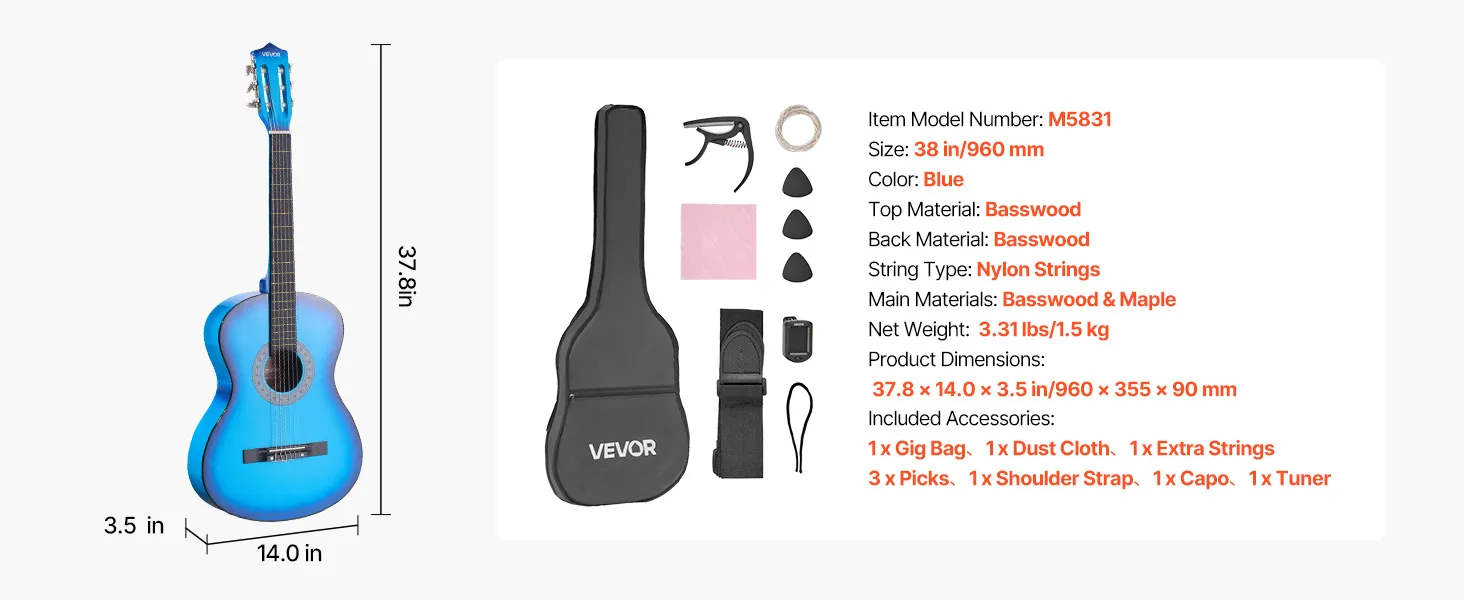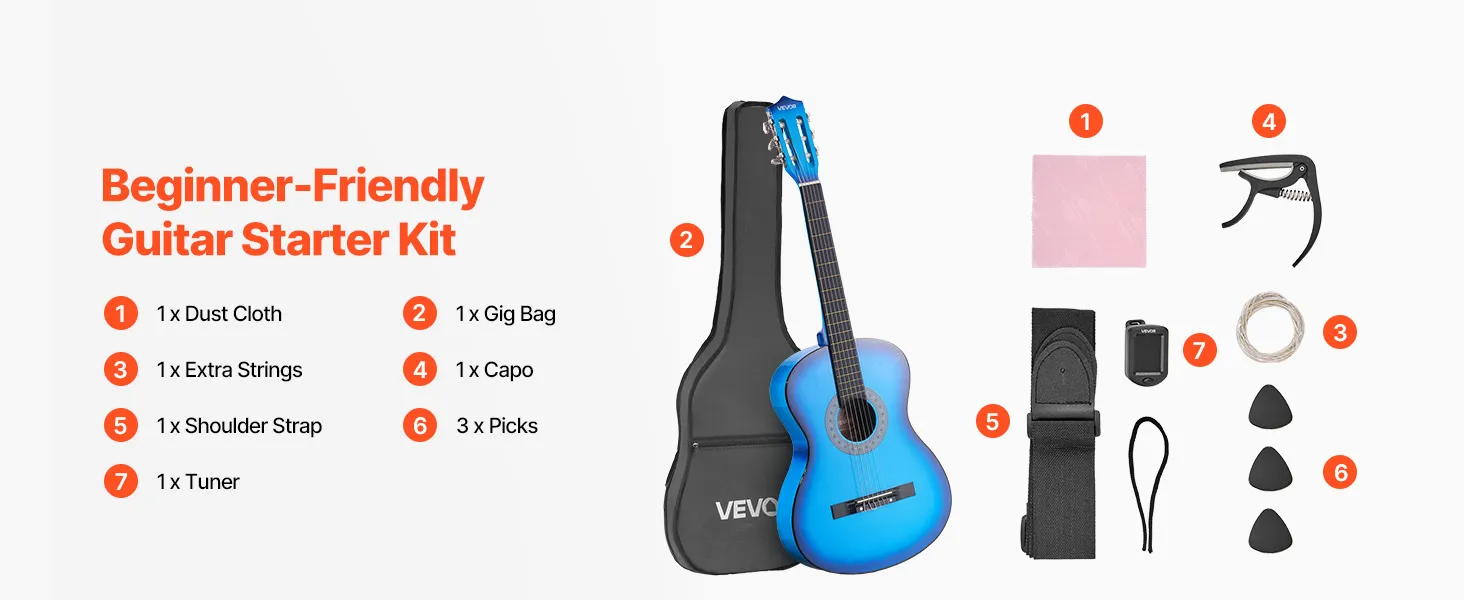 38-palcová súprava klasickej gitary pre začiatočníkov