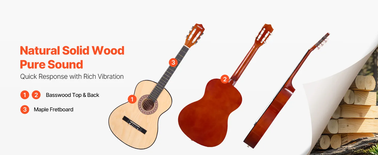 Táto klasická gitara, určená pre začiatočníkov a mladých hudobníkov, kombinuje ručne vyrobenú kvalitu s praktickými funkciami. Vďaka zadnej strane z masívneho dreva, nylonovým strunám a ladičke je hranie a ladenie hračkou. S gig bagom a ďalšími doplnkami obsahuje táto súprava všetko, čo potrebujete na začiatok svojej hudobnej cesty.