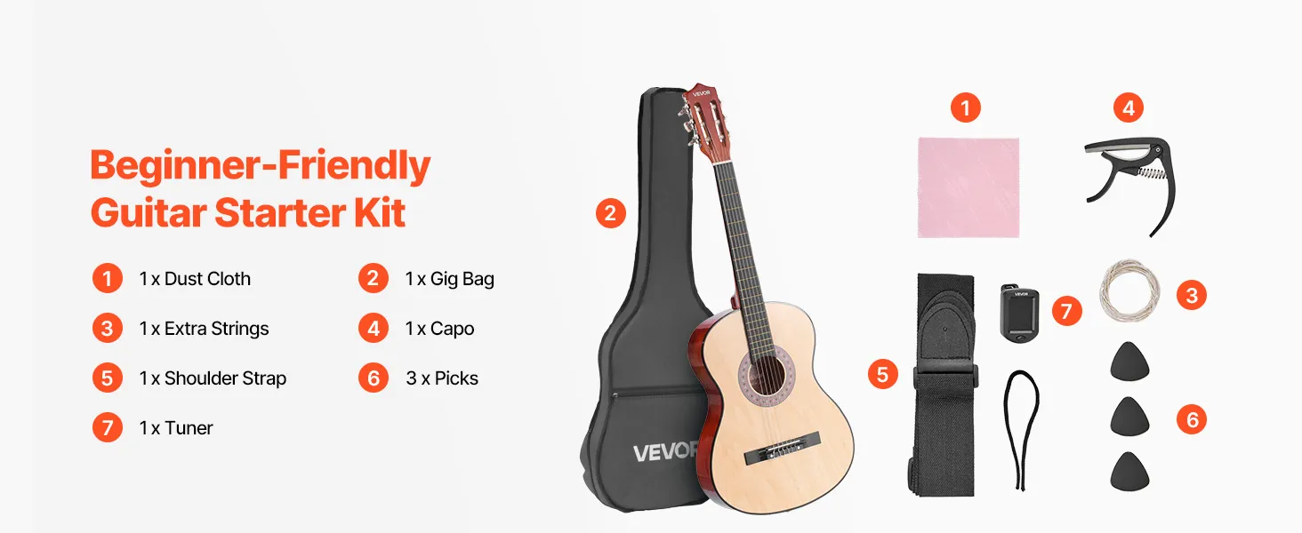 Odpoveď: Áno! Každá gitara sa dodáva s kompletnou sadou základných vecí pre začiatočníkov: taška na gitaru, handrička na utieranie prachu, náhradné struny, popruh, kapodastr, digitálna ladička a 3 trsátka. Je to kompletná sada pre začiatočníkov - ideálna pre začínajúcich hráčov.