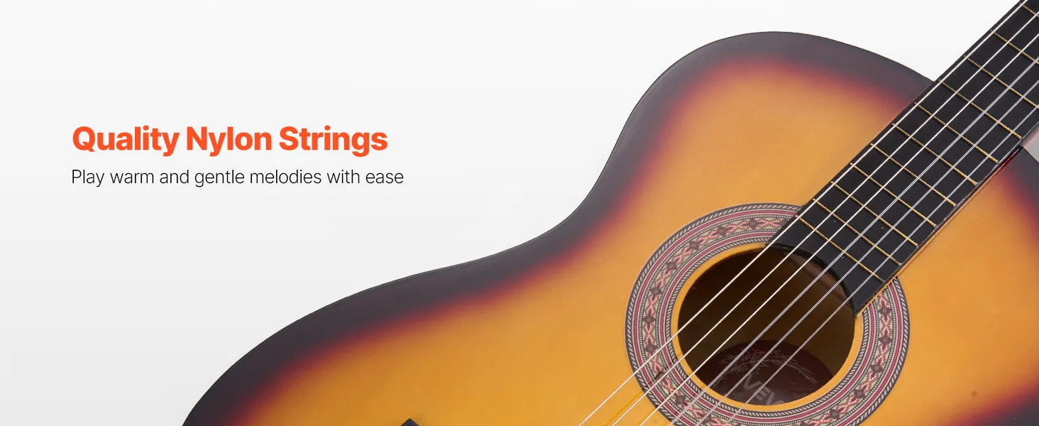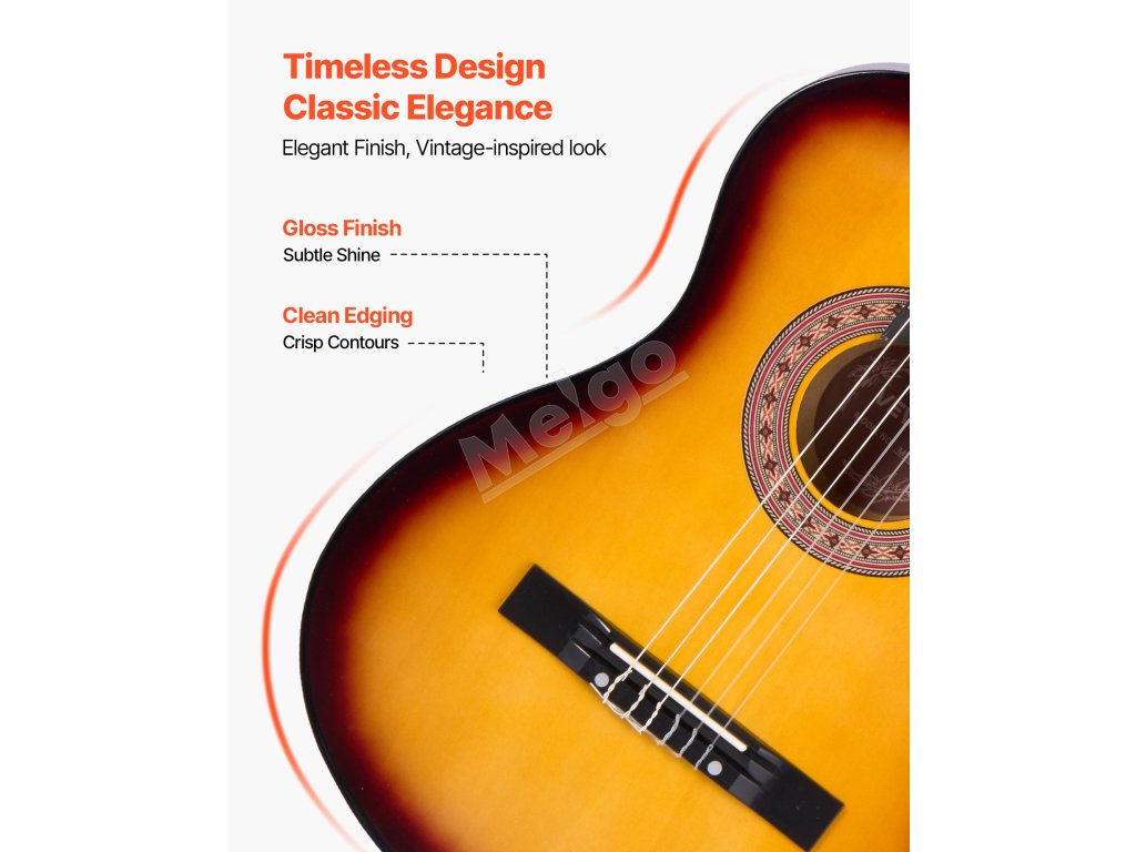 Táto klasická gitara, určená pre začiatočníkov a mladých hudobníkov, kombinuje ručne vyrobenú kvalitu s praktickými funkciami. Vďaka zadnej strane z masívneho dreva, nylonovým strunám a ladičke je hranie a ladenie hračkou. S gig bagom a ďalšími doplnkami obsahuje táto súprava všetko, čo potrebujete na začiatok svojej hudobnej cesty.