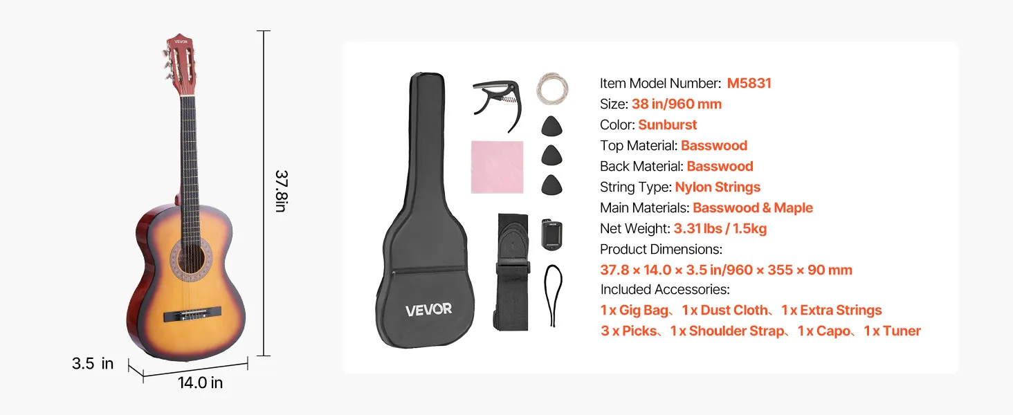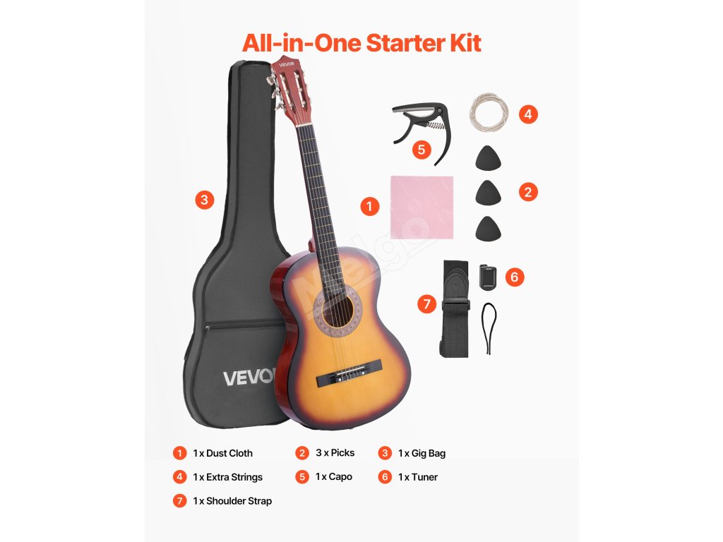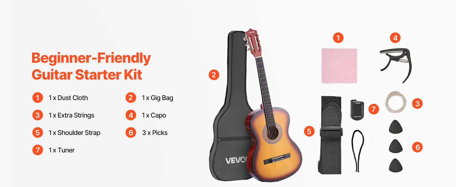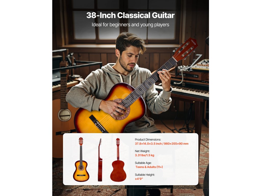 38-palcová súprava klasickej gitary pre začiatočníkov