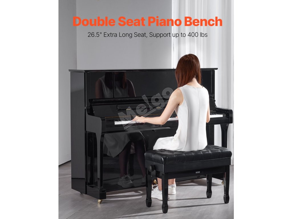Táto duetová klavírna lavica ponúka priestranné sedadlo s nastaviteľnou výškou v rozsahu 20,3" až 23,4". Polstrované sedadlo so špongiou s vysokou hustotou poskytuje pohodlie počas dlhých sedení, zatiaľ čo veľký úložný priestor poskytuje prehľadný priestor na noty a iné príslušenstvo.