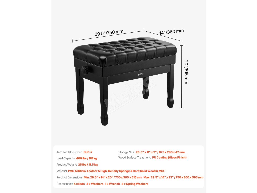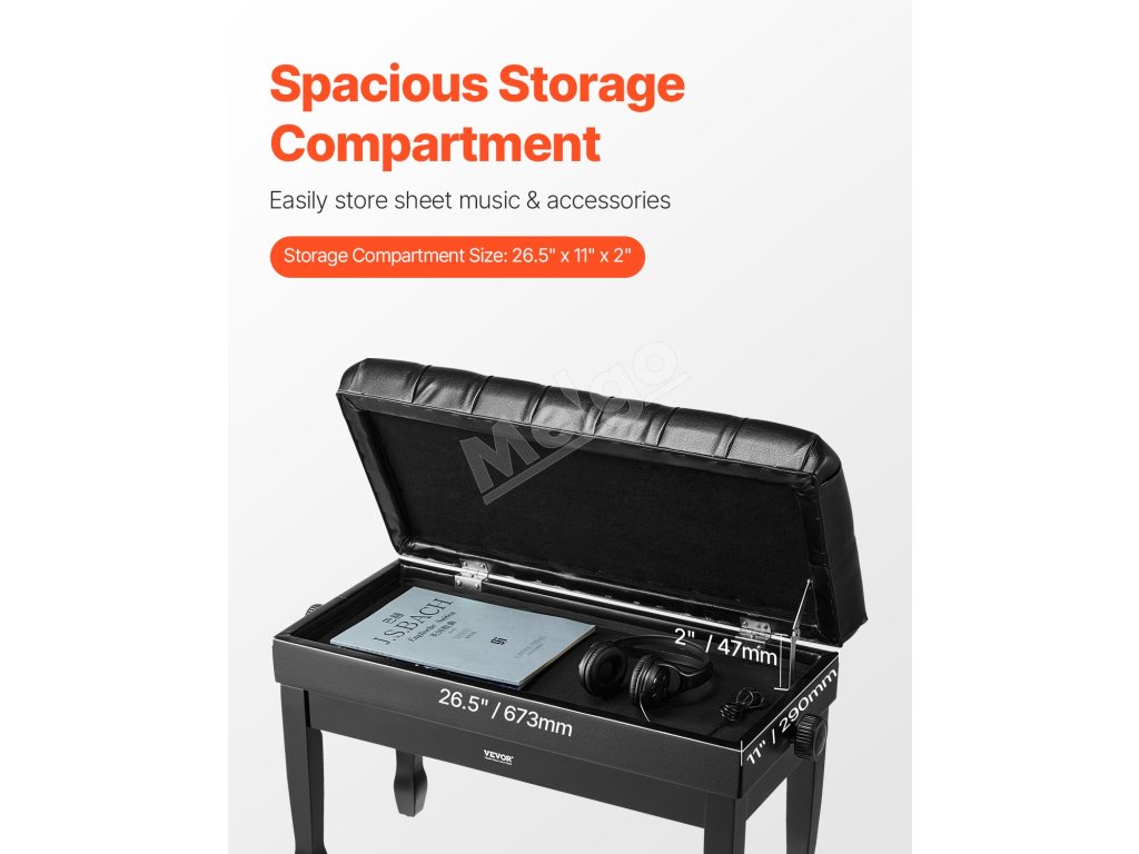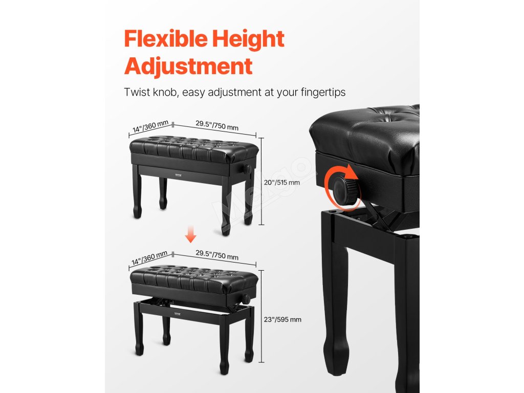 29.nastaviteľná klavírna lavica s úložným priestorom 5" x 14" x 20"