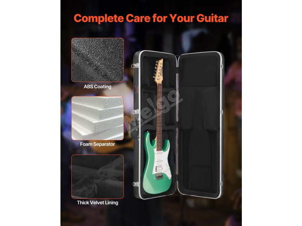 Toto obdĺžnikové tvrdé puzdro na gitaru s vonkajšou povrchovou úpravou ABS je vodotesné a odolné voči vlhkosti, čím chráni vašu gitaru pred vlhkosťou a vplyvmi prostredia. Či už svieti jasné slnko alebo husto prší, môžete ho bez obáv prenášať a hrať.