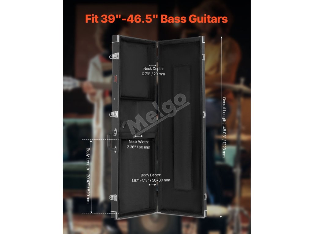 Pevný kufor na basovú gitaru 122 cm / 48.03in vodeodolný s zámkom