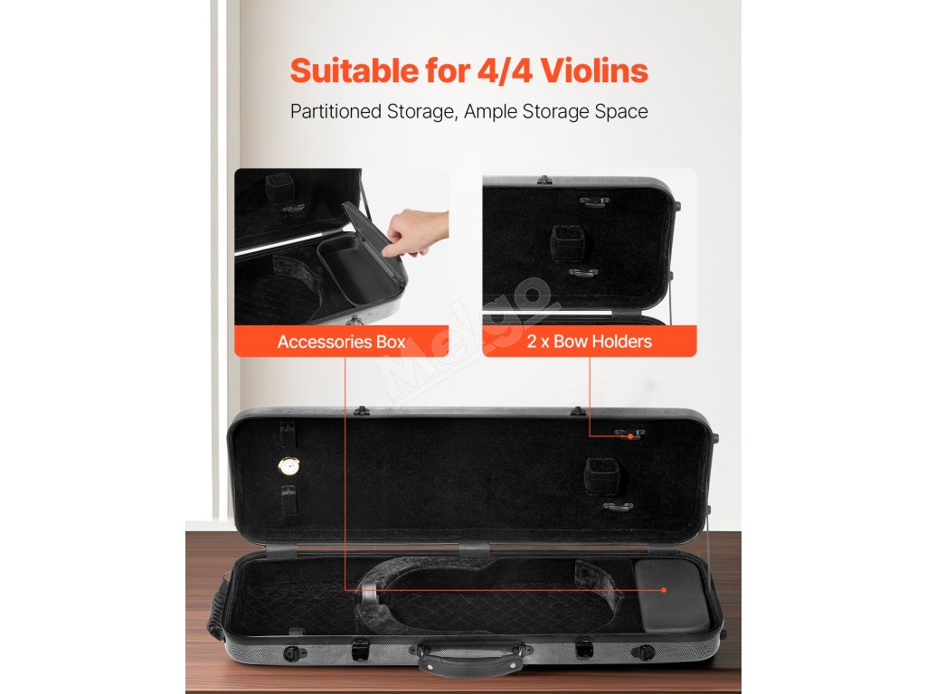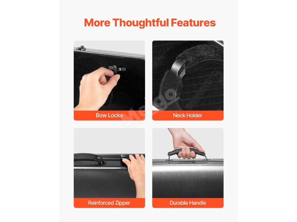 Toto puzdro na husle minimalizuje nárazy počas prepravy. Má viacero priehradiek s dostatočným priestorom na držiak sláčika, potreby na údržbu, nástroje na lutny, notový papier a ďalšie. Jeho ľahká konštrukcia umožňuje pohodlné prenášanie cez rameno alebo v ruke, kamkoľvek pôjdete.