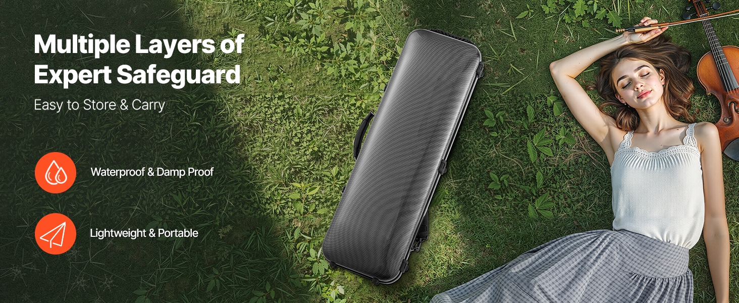 Táto taška na husle je skonštruovaná tak, aby vydržala daždivé dni alebo vystúpenia vonku, a udržala vaše husle v suchu bez zbytočnej hmotnosti. Priedušná konštrukcia pomáha regulovať vlhkosť vo vnútri puzdra, čím znižuje riziko vzniku vlhkosti.