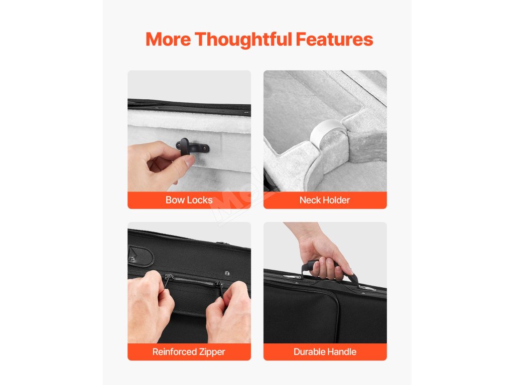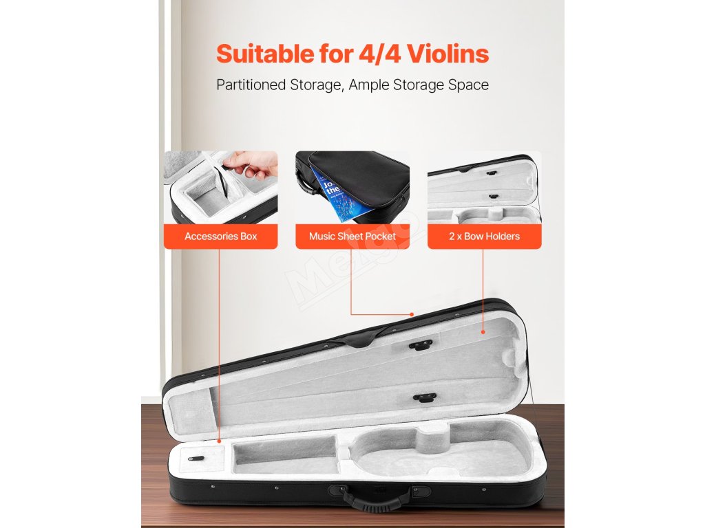 Toto puzdro na husle minimalizuje nárazy počas prepravy. Má viacero priehradiek s dostatočným priestorom na držiak sláčika, potreby na údržbu, nástroje na lutny, notový papier a ďalšie. Jeho ľahká konštrukcia umožňuje pohodlné prenášanie cez rameno alebo v ruke, kamkoľvek pôjdete.