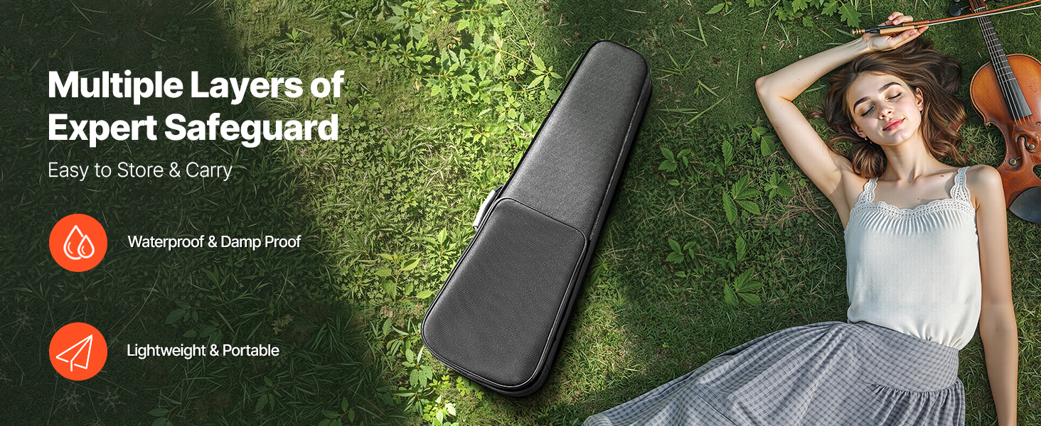 Táto taška na husle je skonštruovaná tak, aby vydržala daždivé dni alebo vonkajšie vystúpenia, a udržala vaše husle v suchu bez zbytočnej hmotnosti. Priedušná konštrukcia pomáha regulovať vlhkosť vo vnútri puzdra, čím znižuje riziko vzniku vlhkosti.
