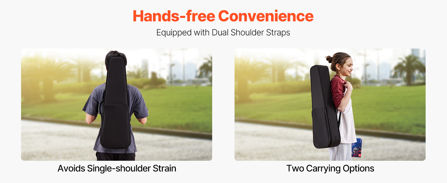 Konštrukcia puzdra na husle s dvojitým ramenným popruhom účinne pomáha zmierniť bolesť ramien a napätie spôsobené nosením na jednej strane. Aj počas dlhých prechádzok alebo dlhšieho státia môžete husle pohodlne prenášať bez pocitu únavy.