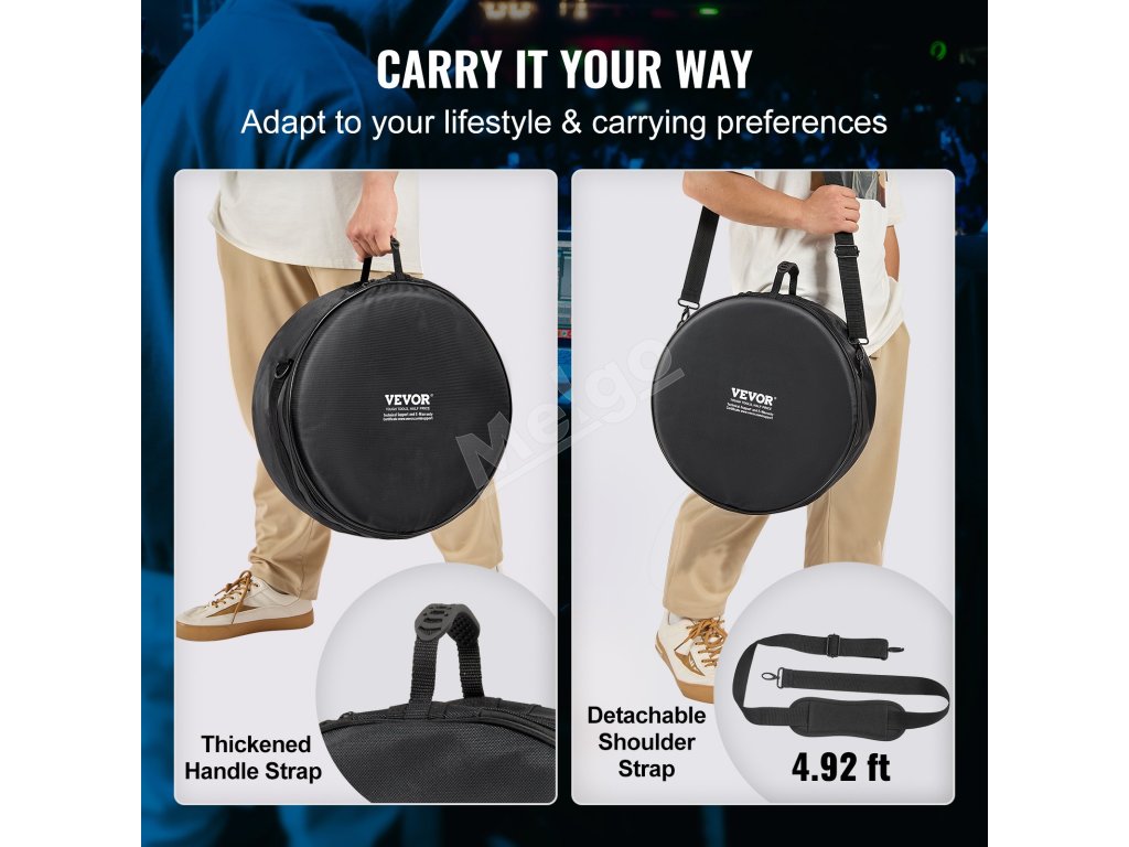 Svoje vybavenie môžete pohodlne prenášať pomocou odnímateľného ramenného popruhu našej bicie tašky s dĺžkou 4,92 ft/1,5 m - nastavte si ho podľa svojich predstáv, aby vám dokonale sedel. V režime batohu si vychutnajte extra oporu vďaka polstrovaným ramenným popruhom; v režime ručného nosenia sa vďaka rozšírenej rukoväti budete cítiť ľahšie pri ťažkom náklade.