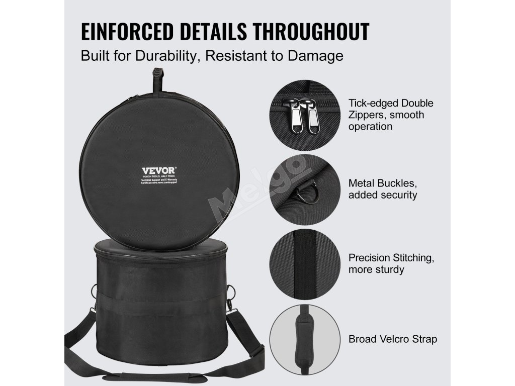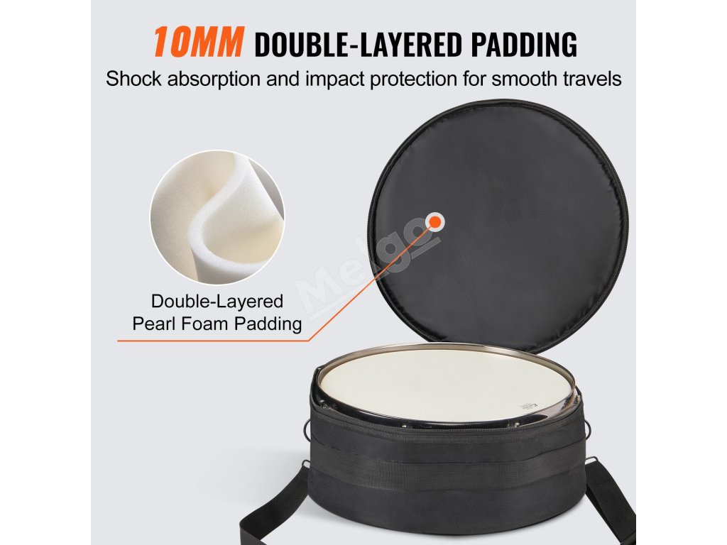 Naše mäkké obaly na bicie sú vybavené zosilnenou rukoväťou, odnímateľným nastaviteľným ramenným popruhom s polstrovaním a odolnými kovovými zipsami, ktoré zabezpečujú komplexnú ochranu vášho zariadenia počas prepravy, skladovania a každodenného používania. Zažite väčšie pohodlie a komfort!
