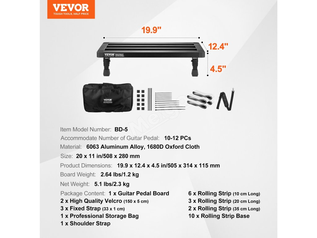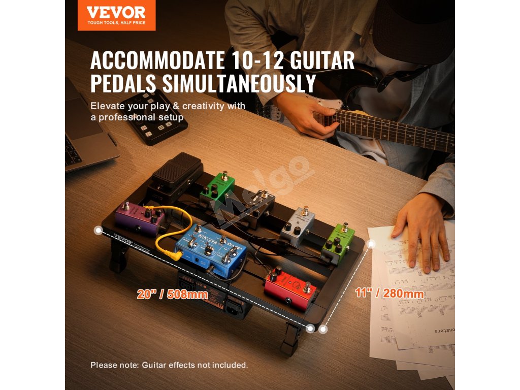 Vylepšite svoju hudobnú zostavu pomocou nášho gitarového pedalboardu s rozmermi 20'' x 11''. Je navrhnutá tak, aby sa na ňu zmestilo 10-12 pedálov a zároveň poskytovala priestor pre napájacie zdroje pod ňou, a je tak ideálnym riešením pre hudobníkov, ktorí hľadajú pohodlie a efektivitu v tvorivom procese.