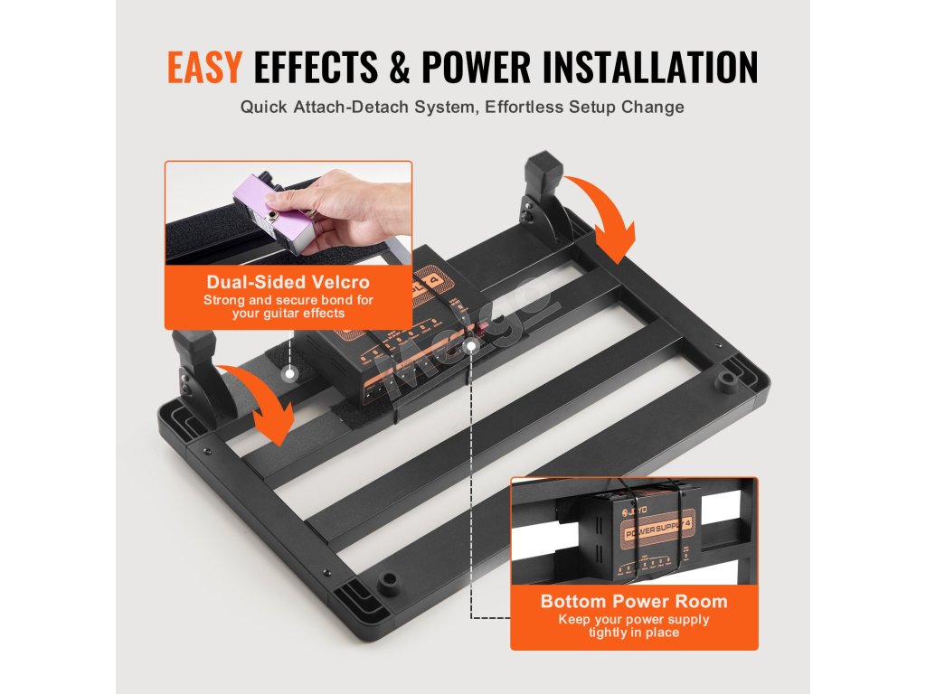 Objavte silu našich vysokokvalitných suchých zipsov pre silné priľnutie , ktoré možno ľubovoľne rozložiť. Spodná časť našej pedálovej dosky je vybavená vyhradeným priestorom na napájací zdroj, ktorý sa na väčšie pohodlie ľahko zaistí popruhmi.