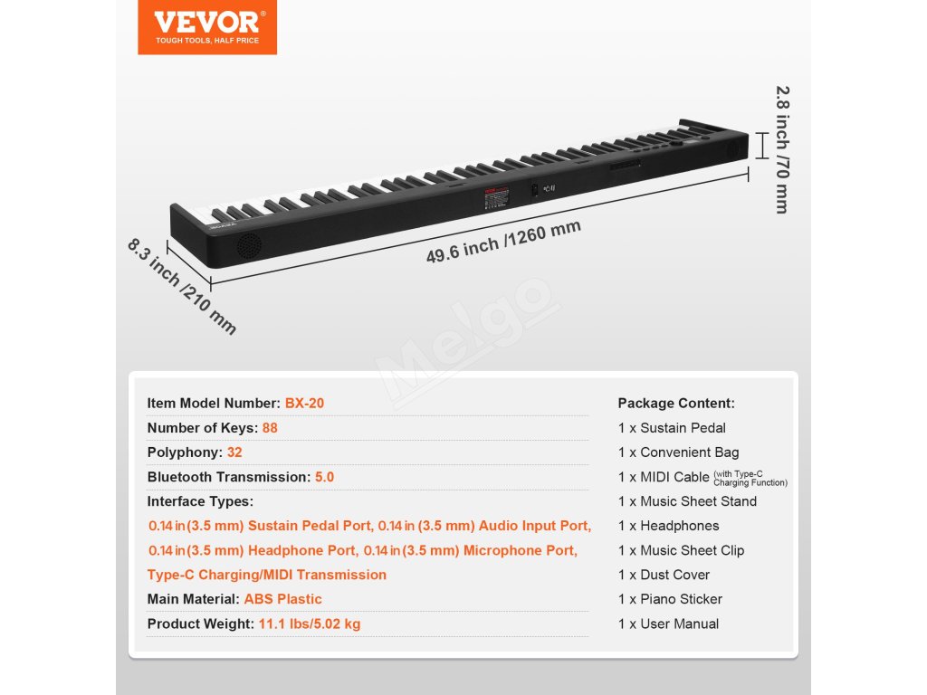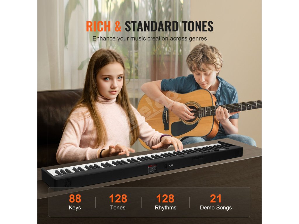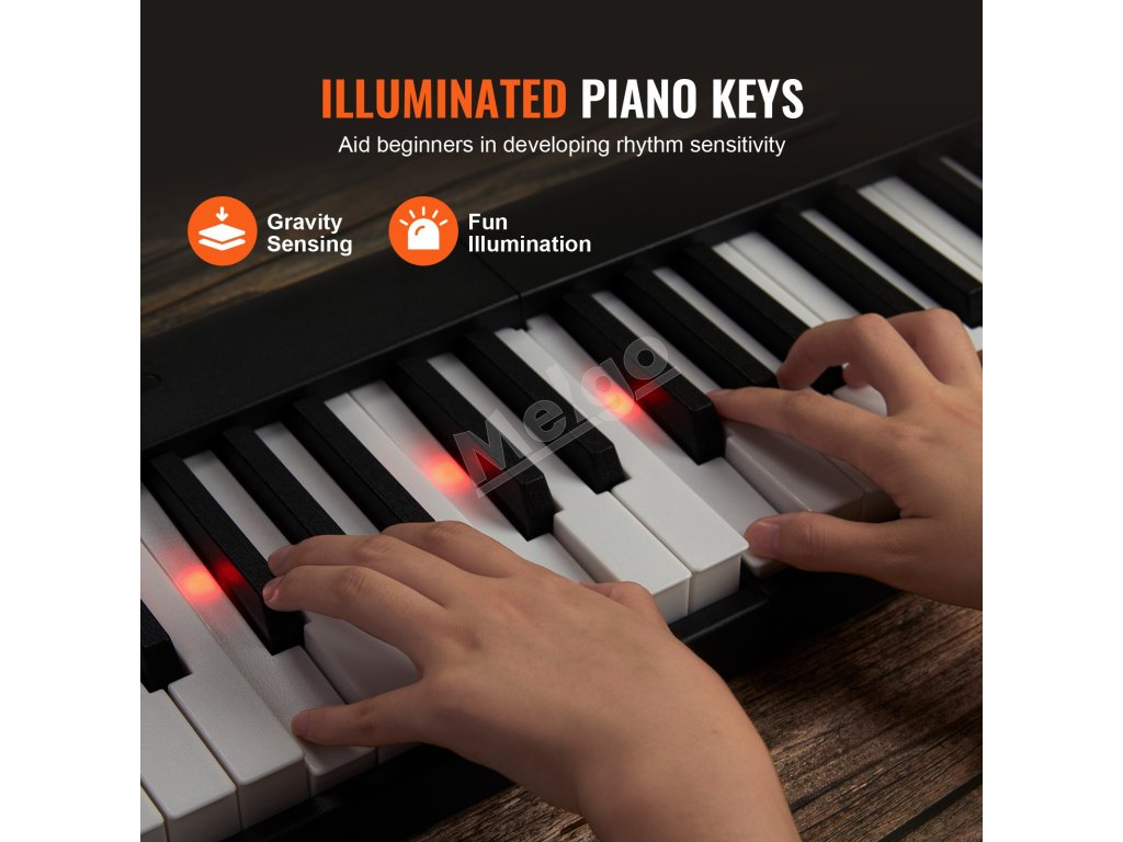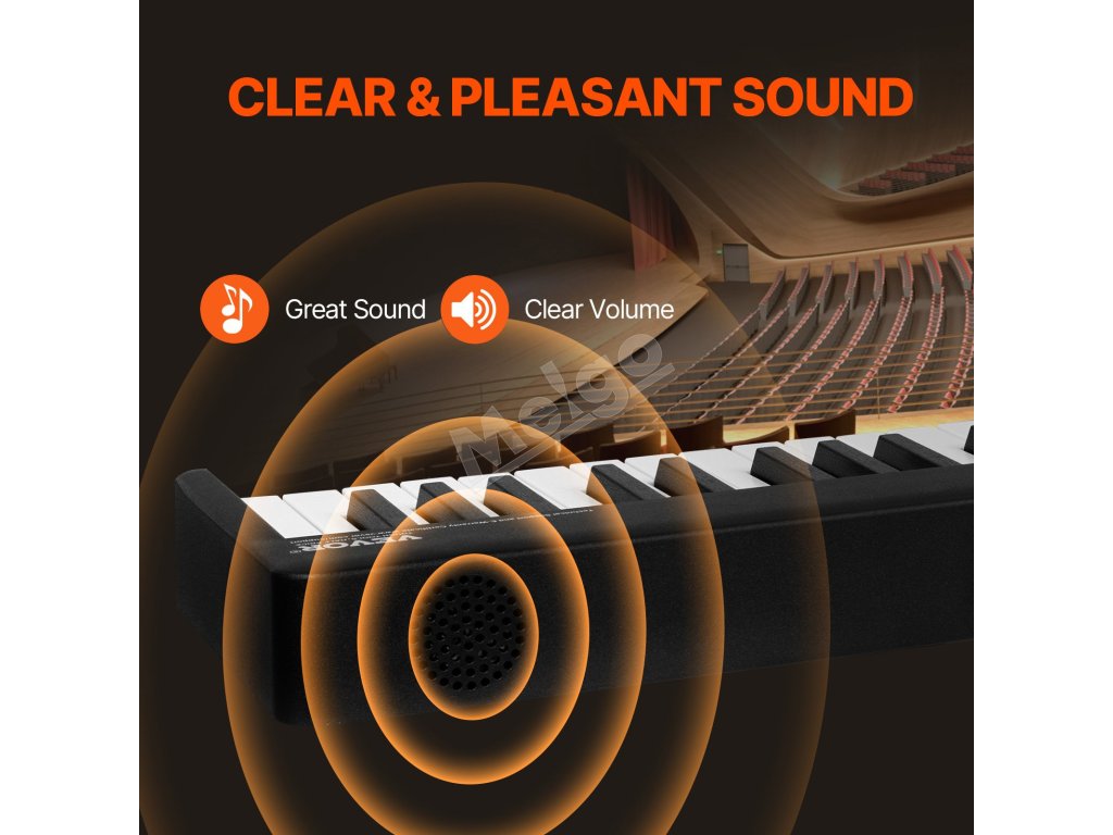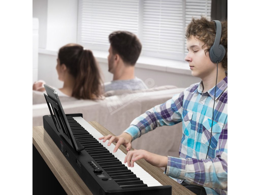 Toto skladacie piano so 128 tónmi vám umožní hrať na najrôznejšie zvuky nástrojov priamo z klaviatúry. Rozloženie 88 klávesov v kombinácii s pedálmi a funkciami sustain prináša autentický zážitok z hrania na klavíri, čo z neho robí ideálny nástroj na výučbu a učenie sa hudby.