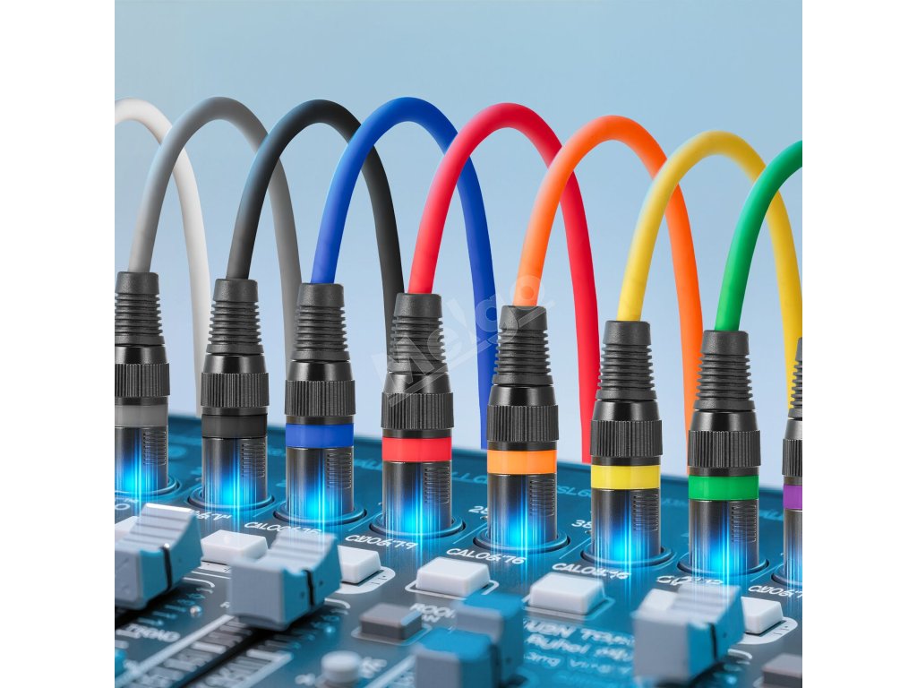 Oba konektory mikrofónových káblov sú označené rovnakou farbou, čo uľahčuje rýchle rozlíšenie pripojení pri použití viacerých káblov a znižuje zámenu.