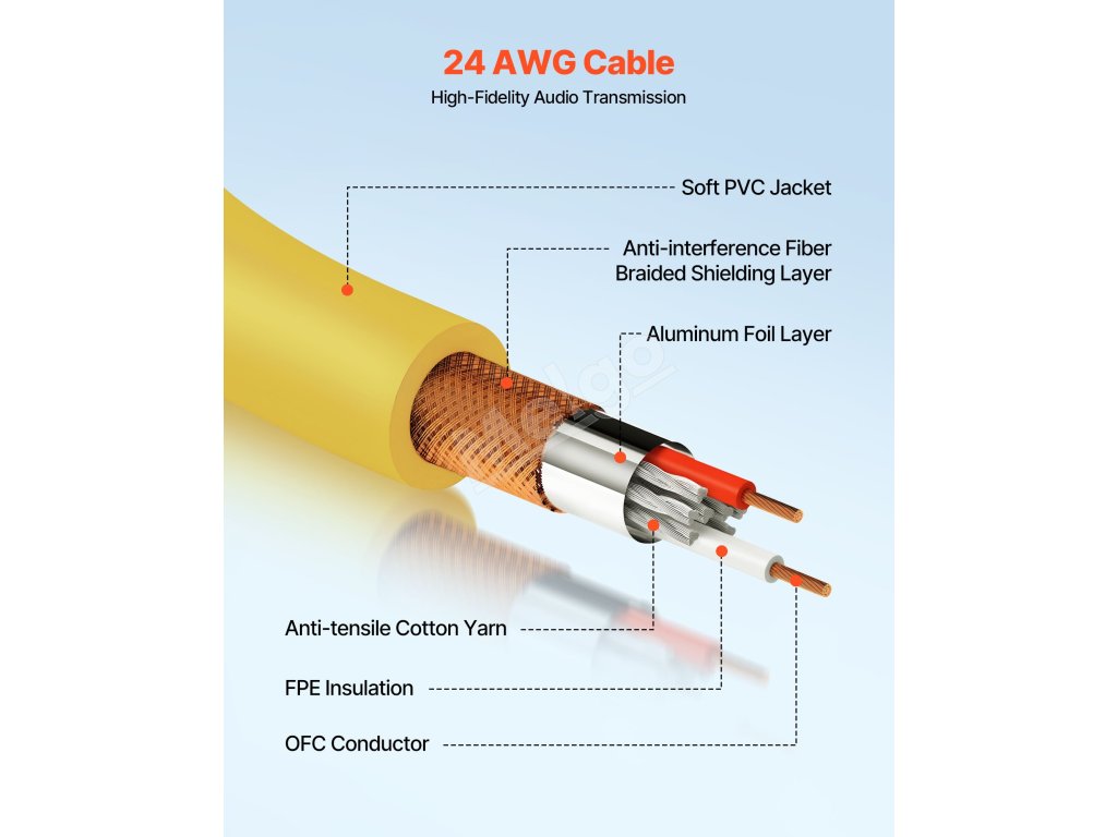 Tento 24 AWG XLR kábel sa môže pochváliť vysokou vernosťou prenosu zvuku. Je vybavený tieniacou vrstvou proti rušeniu, ktorá účinne znižuje rôzne rušivé vplyvy a zabezpečuje vysoko verný prenos zvuku.