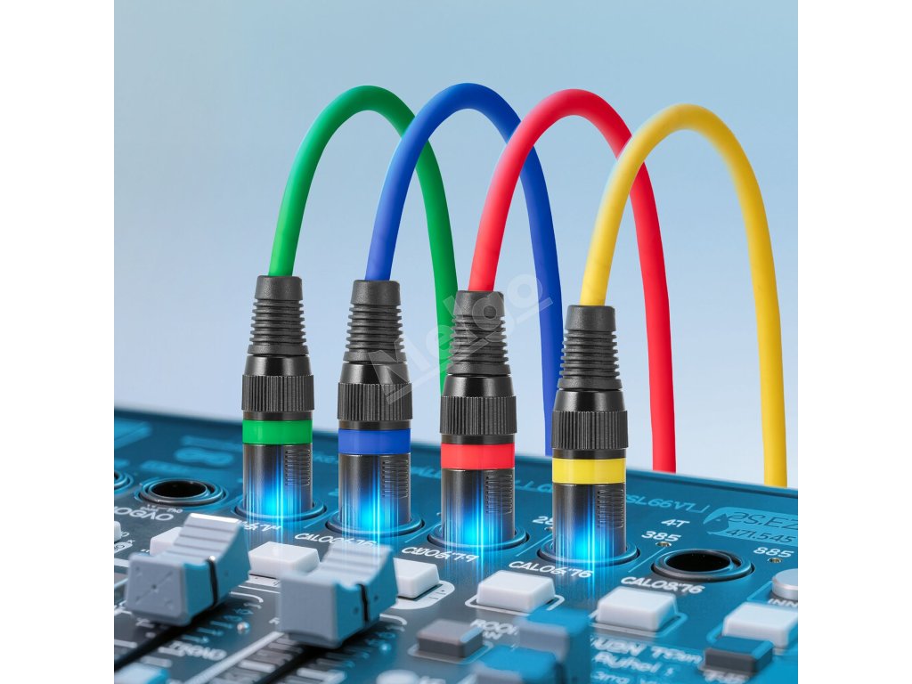 Oba konektory mikrofónových káblov sú označené rovnakou farbou, čo uľahčuje rýchle rozlíšenie pripojení pri použití viacerých káblov a znižuje zámenu.