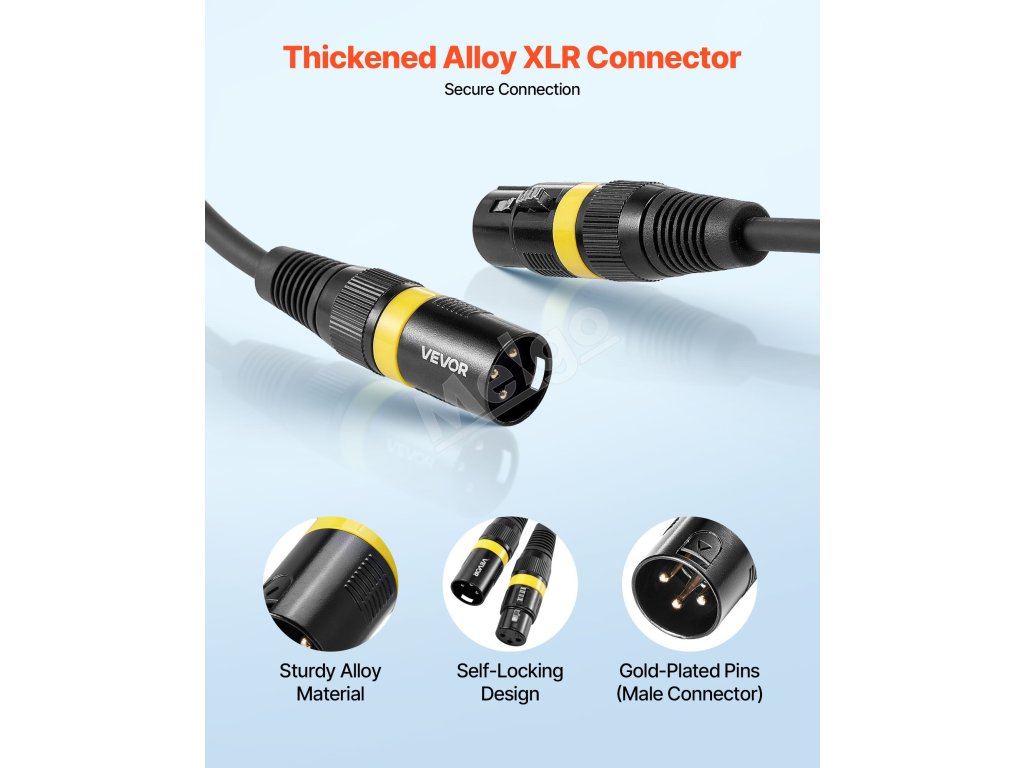 Konektor XLR z pevnej zliatiny mikrofónového kábla je vybavený samosvornou konštrukciou. Umožňuje automatické uzamknutie po zasunutí, poskytuje stabilné pripojenie bez uvoľnenia a poskytuje pohodlné zapojenie a používanie.