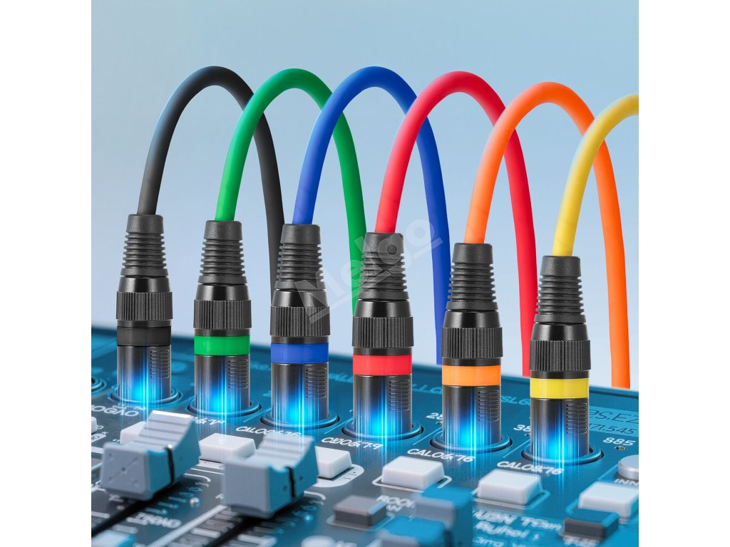Oba konektory mikrofónových káblov sú označené rovnakou farbou, čo uľahčuje rýchle rozlíšenie pripojení pri použití viacerých káblov a znižuje zámenu.