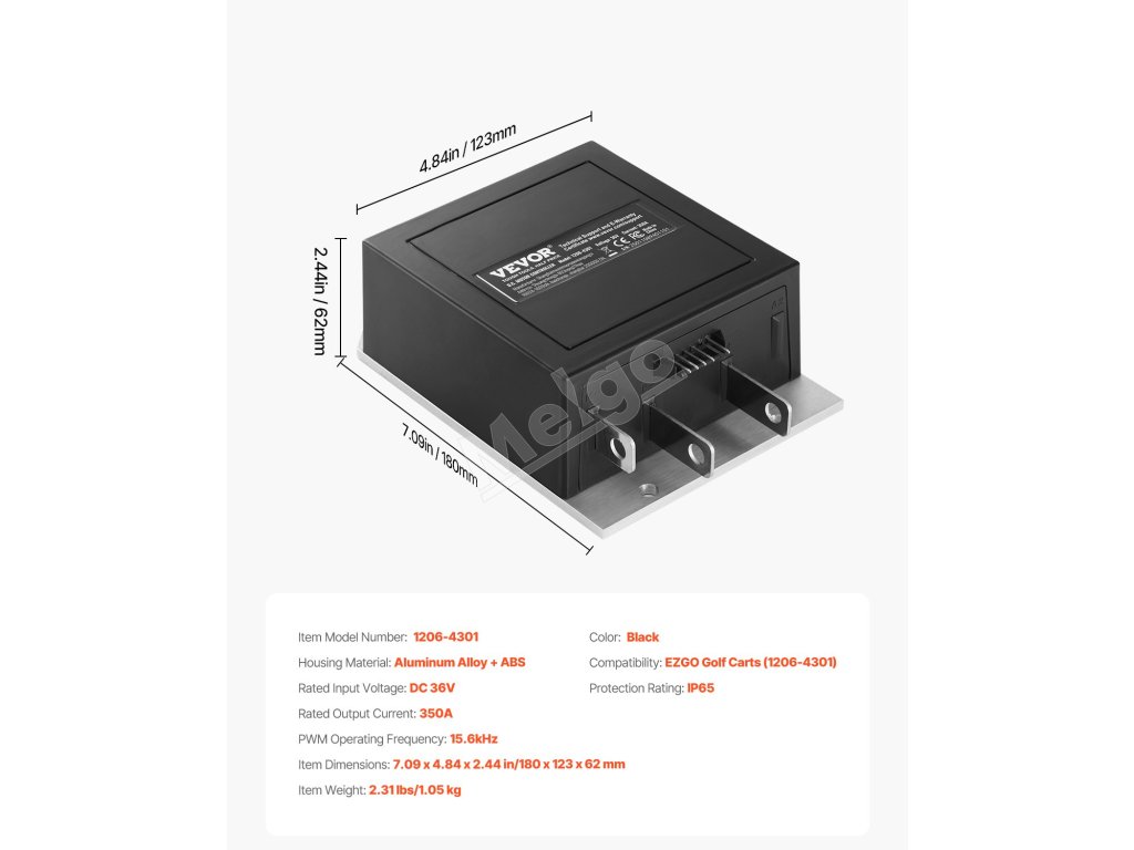 Regulátor rýchlosti golfového vozíka 36V 350A IP65 hliník/ABS