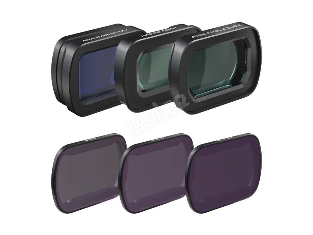 Súprava obsahuje makro, širokouhlé a anamorfné objektívy, ako aj filtre ND 8/32/128, ktoré dodajú vašim záberom jedinečný nádych. Navyše boli vytvorené z kvalitných materiálov a sú odolné voči poškriabaniu, prachu a mastným škvrnám. Okrem toho vám ich inštalácia a demontáž nebude spôsobovať žiadne problémy.