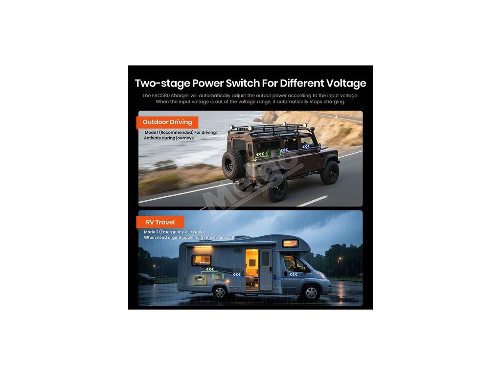 Nabíjačka FAC580 sa vďaka užívateľsky prívetivému dizajnu ľahko inštaluje a obsluhuje. Inštalačné kroky zahŕňajú pripojenie káblov, sledovanie, zapojenie do batérie a upevnenie nabíjačky do steny vozidla. Nabíjačka je tiež vybavená režimom prepínača výkonu, ktorý automaticky upravuje výstupný výkon podľa vstupného napätia, čím zabezpečuje efektívne a bezpečné nabíjanie.