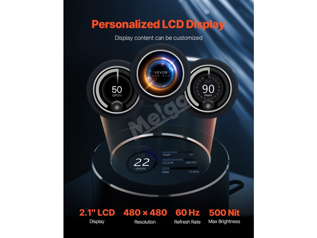 Vodné aio chladenie procesora 120mm, 2.1" lcd, argb, pre 115x/am4/am5
