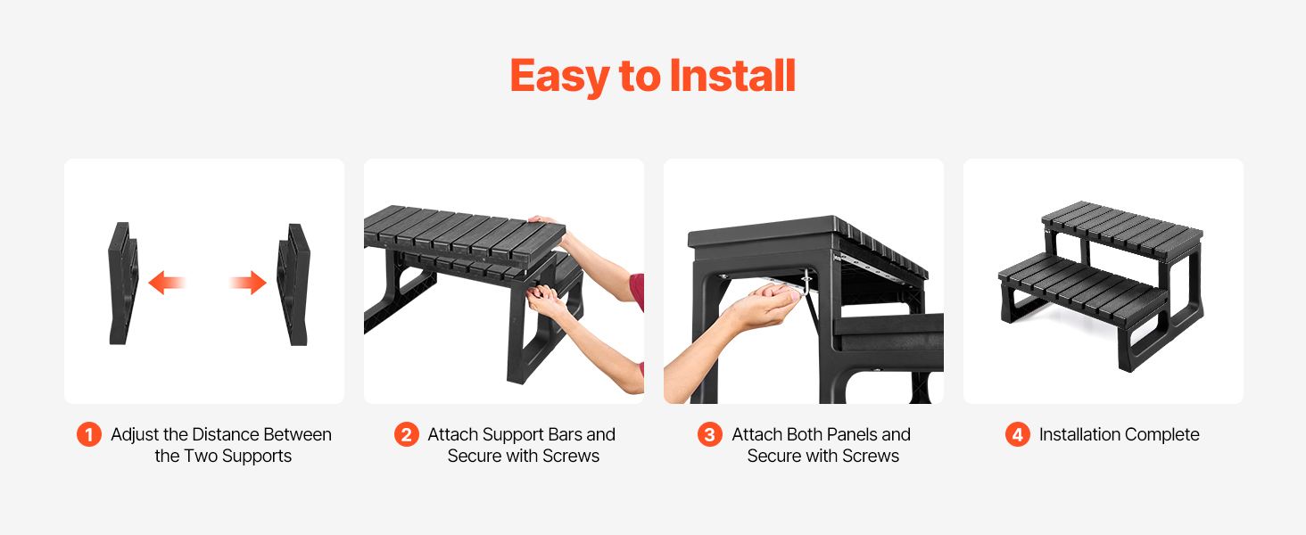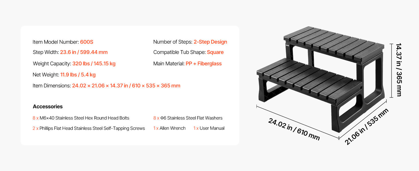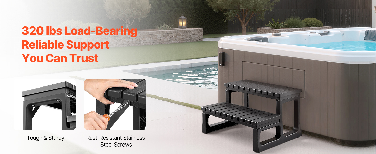 Robustný schodík do vírivky vytvorený pre istotu. Vysoká nosnosť a široký protišmykový nášľap ponúkajú bezpečné a pohodlné postavenie. Materiály pripravené na poveternostné vplyvy odolávajú opotrebovaniu vo vonkajšom prostredí. Veľkosť na umiestnenie v jednej rovine so štvorcovými vaňami. Ideálne pre vírivky, kúpele a nadzemné alebo nafukovacie bazény.