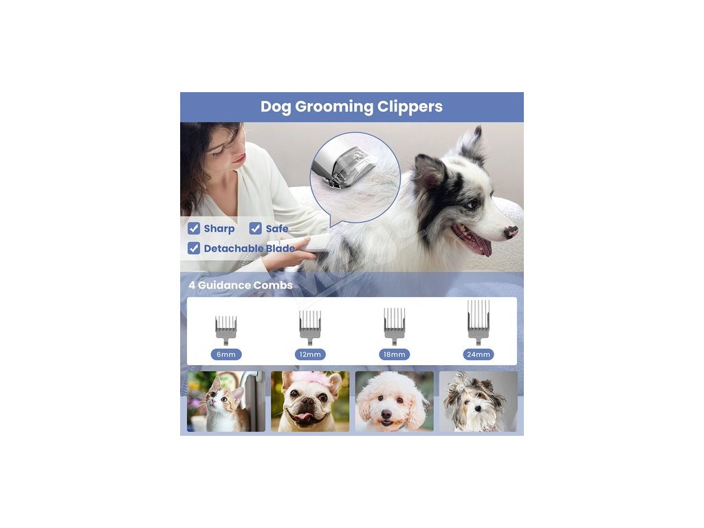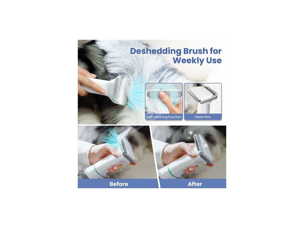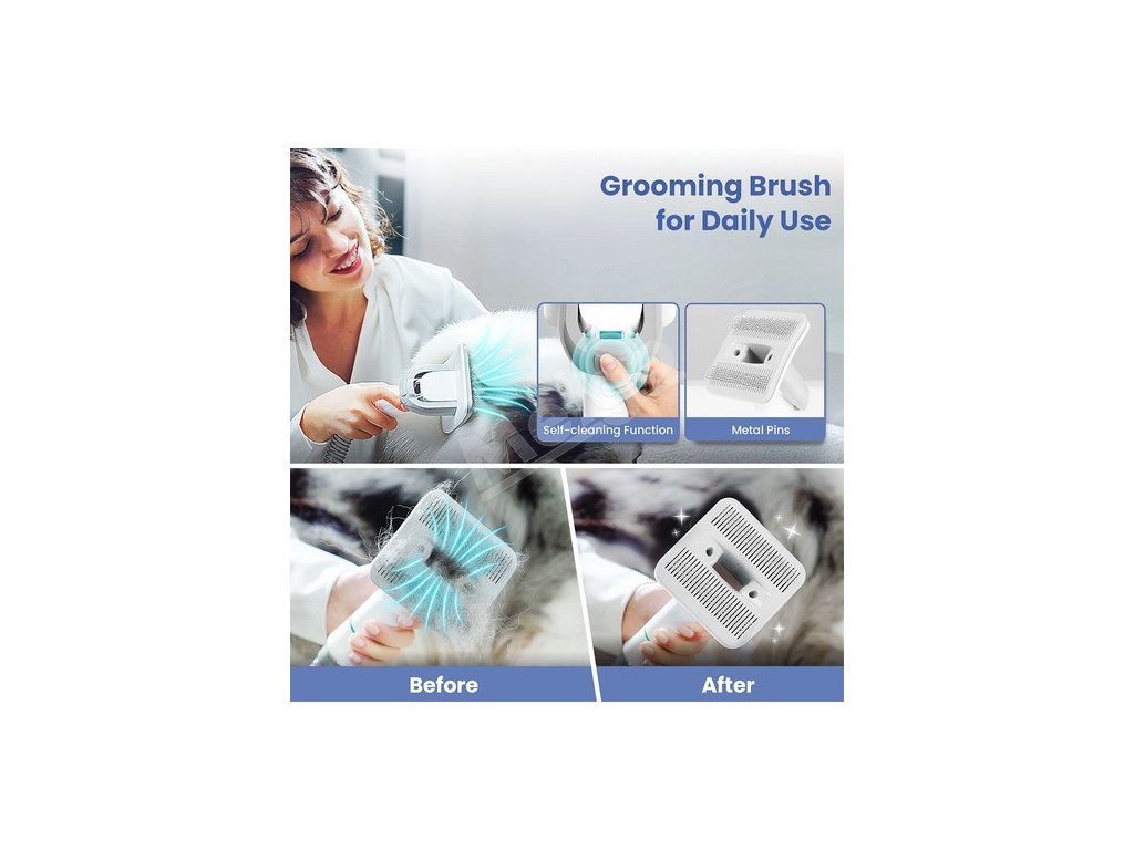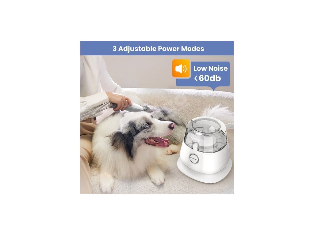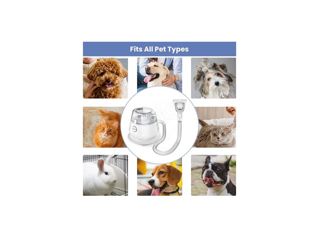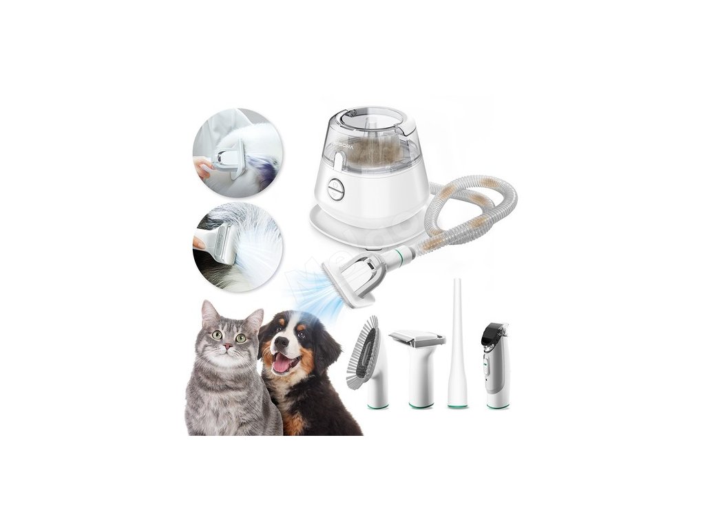 Tento vysávač na úpravu srsti domácich miláčikov sa dodáva s 5 nástrojmi: elektrickým zastrihávačom srsti so 4 hrebeňovými nadstavcami, kefou na úpravu srsti, kefou na odstraňovanie srsti, čistiacou kefou a štrbinovým nástrojom. Tento vysávač na starostlivosť o psov ponúka lepší čistiaci výkon ako iné zastrihávače chlpov domácich zvierat, chlpy domácich zvierat sa môžu pri zastrihávaní a úprave zachytávať, čím sa znižuje množstvo poletujúcich chlpov a ich prilepenie na oblečenie a pohovku.