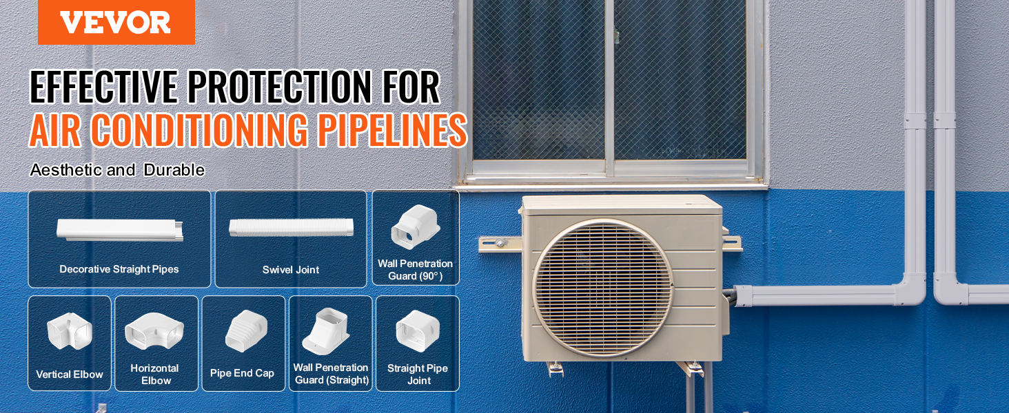 Náš kryt sady rozvodov splitovej klimatizácie sa dodáva so všetkým potrebným príslušenstvom, účinne chráni potrubia chladiva, zabraňuje vonkajšiemu poškodeniu a predlžuje životnosť rozvodov klimatizačnej jednotky.