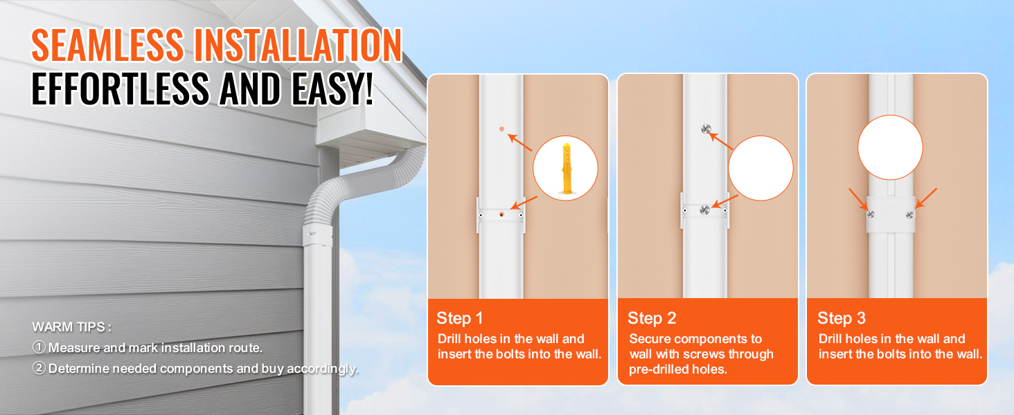 Celá súprava potrubí, vyrobená z materiálov PVC+PE, môže byť natretá farbou, ktorá sa hodí k dizajnu domu, a tak dokonale splynie s okolím.