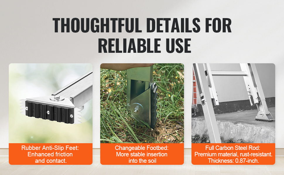 Protišmykové gumové nožičky zlepšujú kontakt s povrchom na zabezpečenie stability. Tyč s plným závitom zvyšuje trenie, aby sa zabránilo uvoľneniu. Je vyrobená z vysokokvalitnej uhlíkovej ocele, je odolná proti korózii a trvácna, čo zaručuje dlhodobú spoľahlivosť a bezpečnosť.