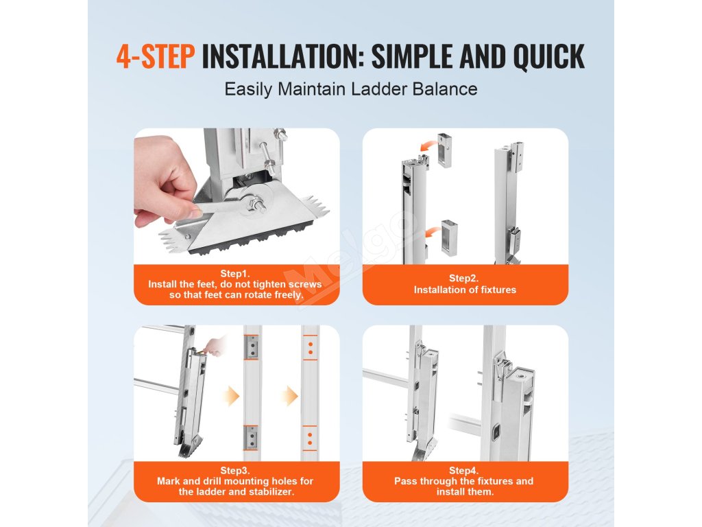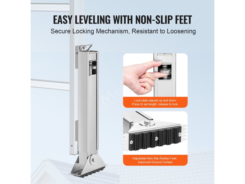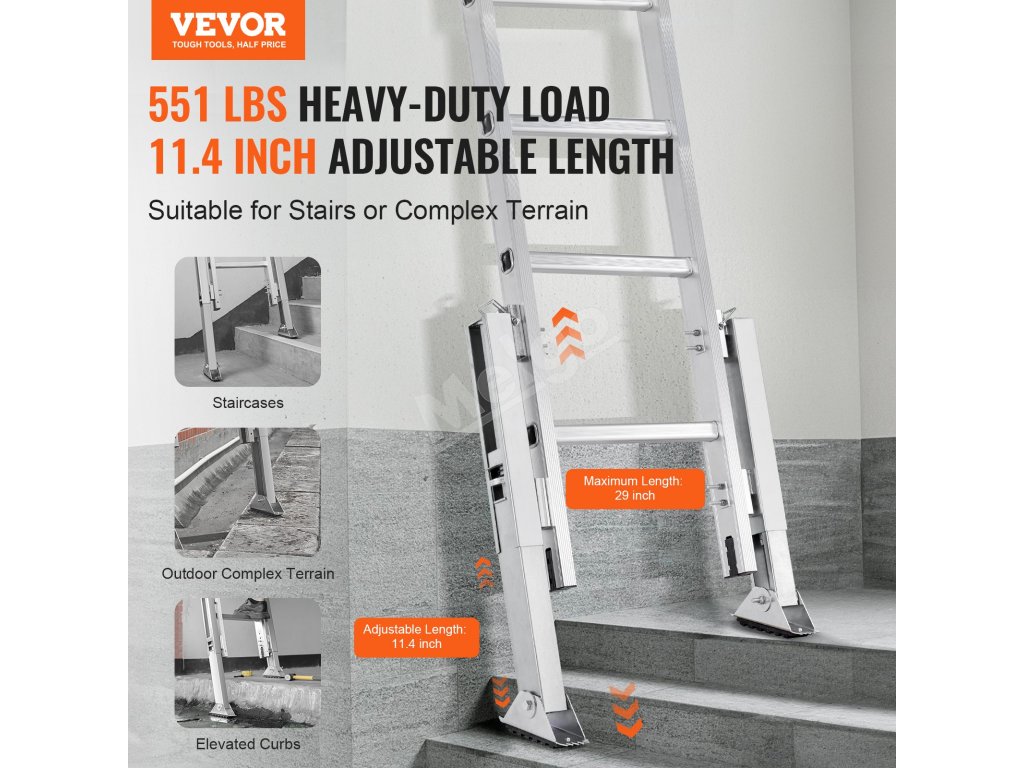 S týmto vodováhou bez námahy vyrovnáte rebrík v akomkoľvek teréne. Unesie až 550 kg a je kompatibilný s rôznymi typmi rebríkov, je vybavený protišmykovými podložkami pre bezpečnú stabilitu. Zvládnite zložité povrchy s istotou a zakaždým zaistite bezpečnosť.