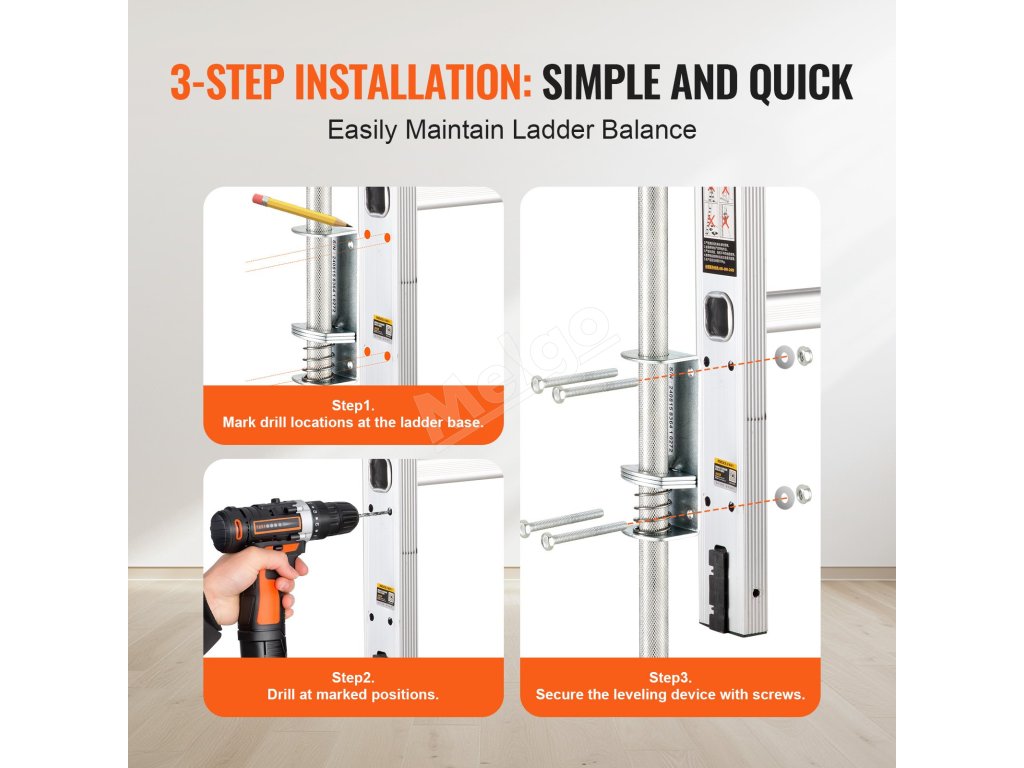 Vyrovnávač rebríka, oceľ 23.4 inch, nosnosť 550lbs, pre nerovný terén