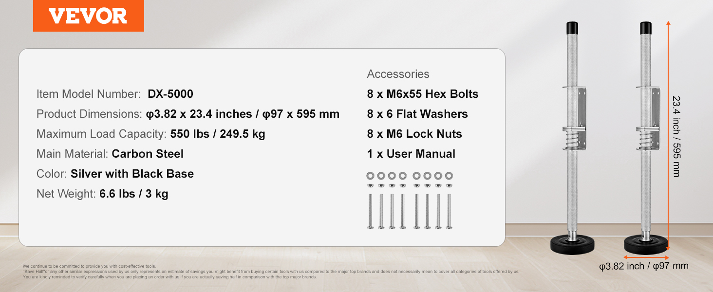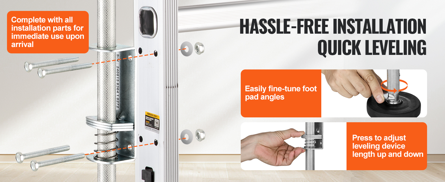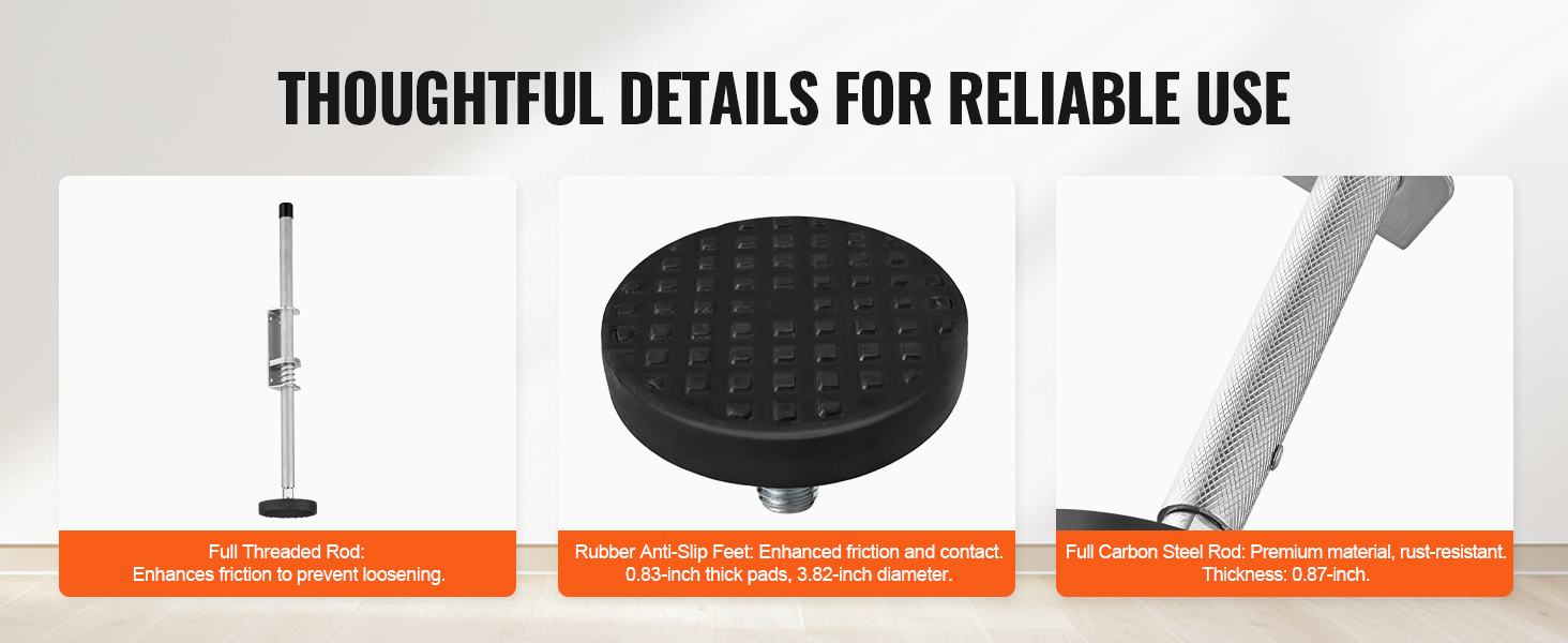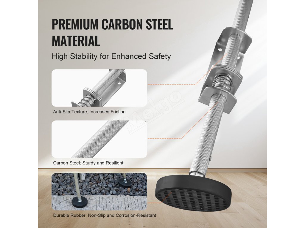 Protišmykové gumové nožičky zlepšujú kontakt s povrchom na zabezpečenie stability. Tyč s plným závitom zvyšuje trenie, aby sa zabránilo uvoľneniu. Je vyrobená z vysokokvalitnej uhlíkovej ocele, je odolná proti korózii a trvácna, čo zaručuje dlhodobú spoľahlivosť a bezpečnosť.