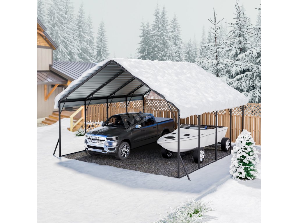 Kovový prístrešok na auto 5.8×6×3.77 m s odnímateľnými bočnými stenami