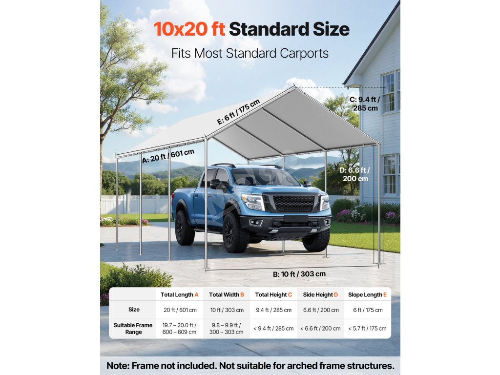 Štandardný náhradný kryt prístrešku pre auto s rozmermi 10 × 20 stôp je navrhnutý tak, aby pasoval na väčšinu rámov prístrešku pre auto. Na jednoduchú výmenu nie je potrebné žiadne orezávanie ani úpravy. Je ideálny na rýchlu výmenu pre domácich majstrov.