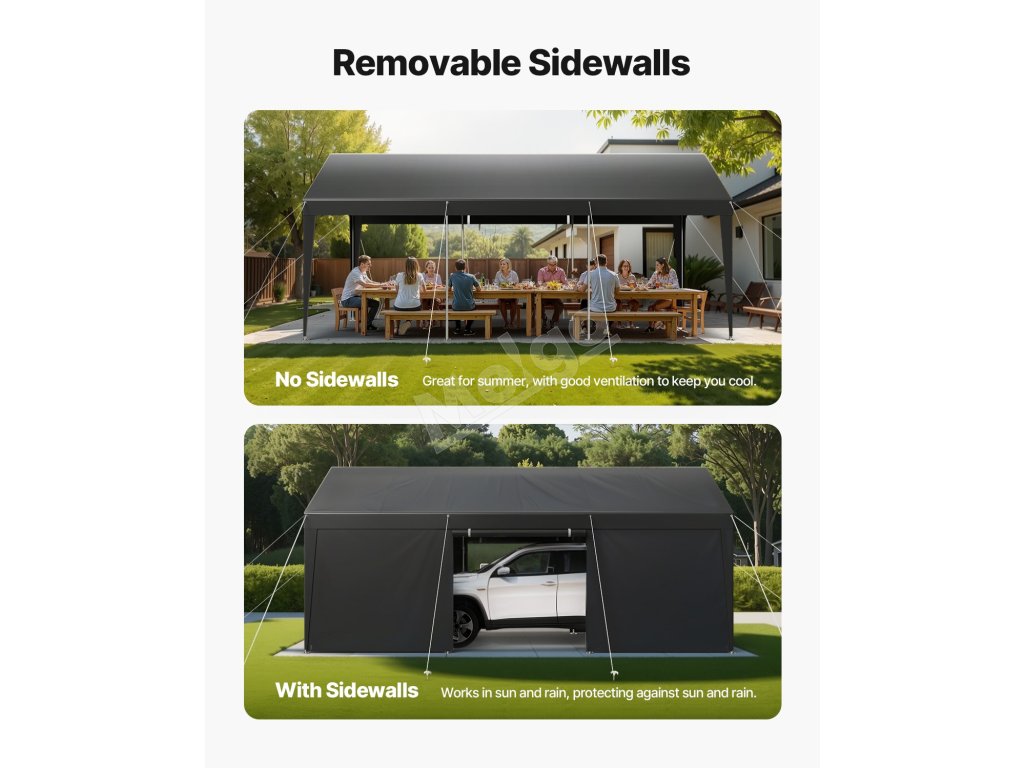 Prístrešok na auto 12×20 FT s odnímateľnými stenami, UV/vodeodolný