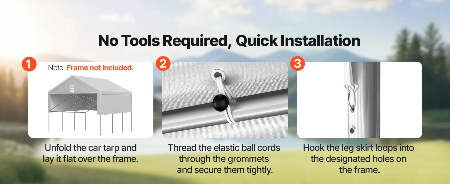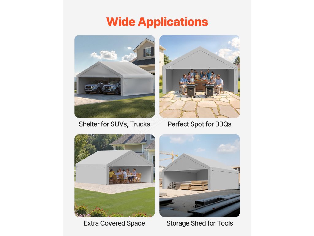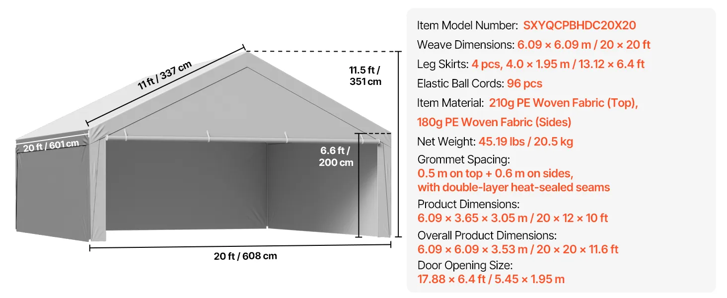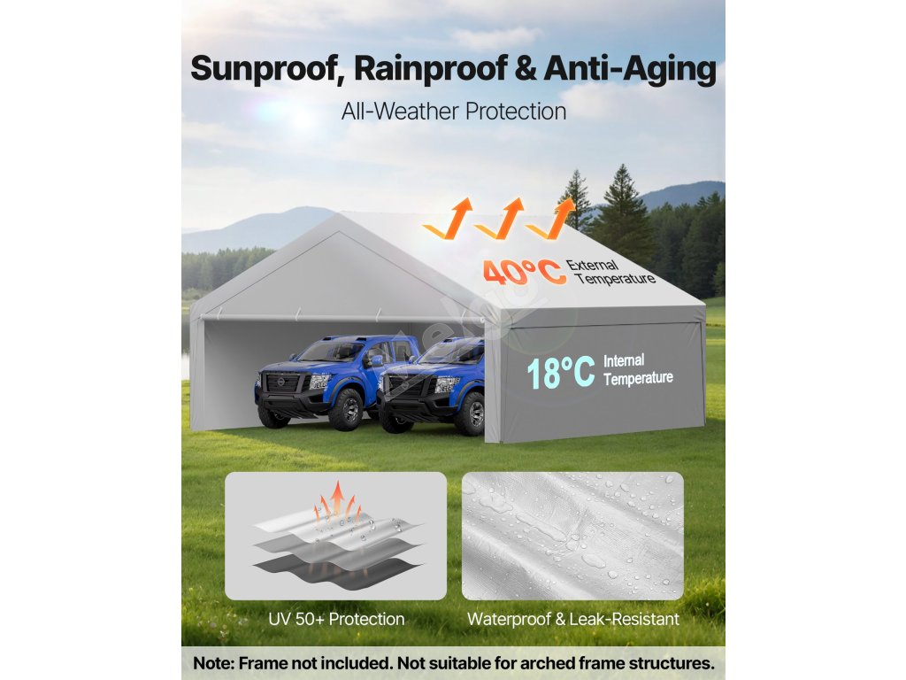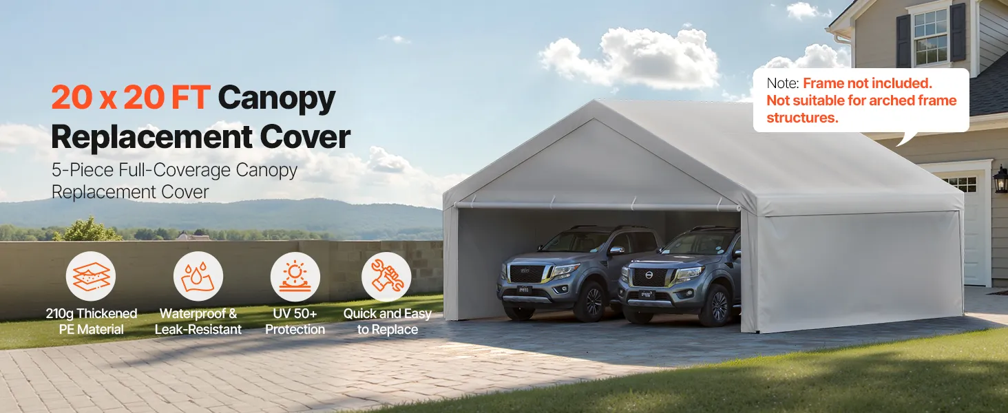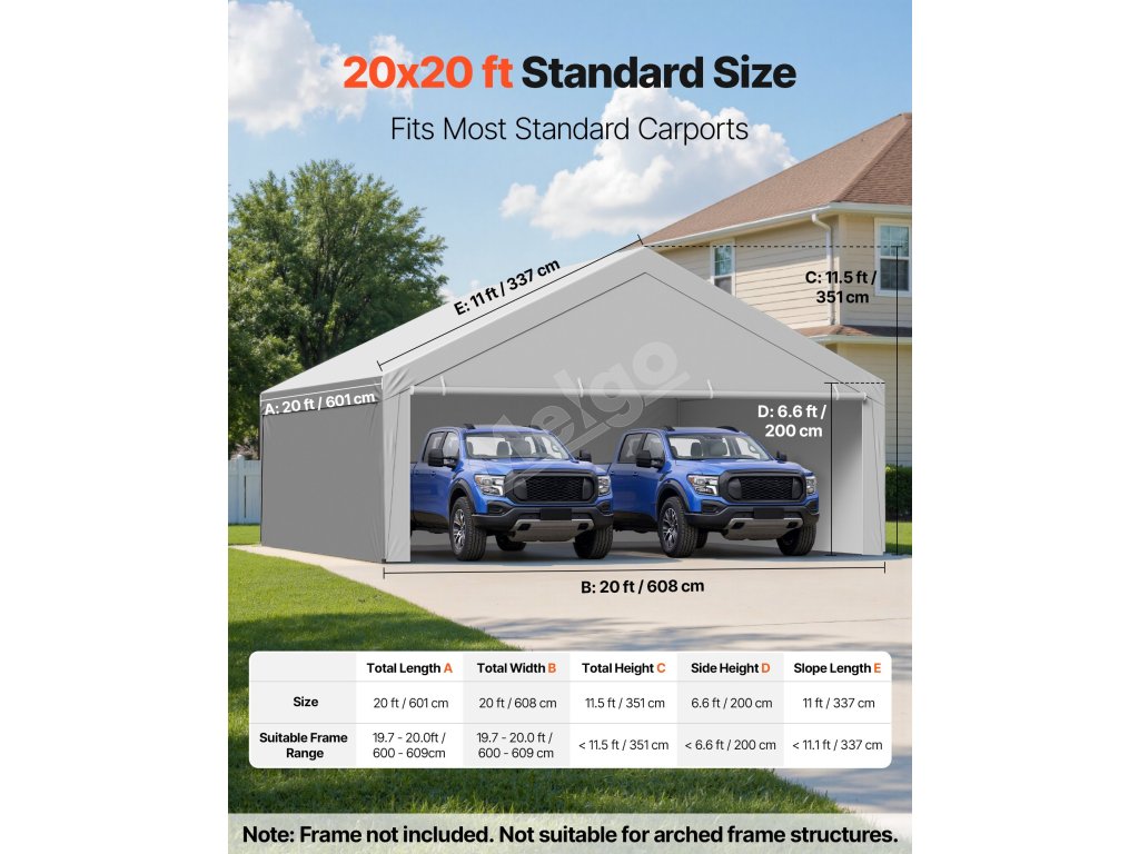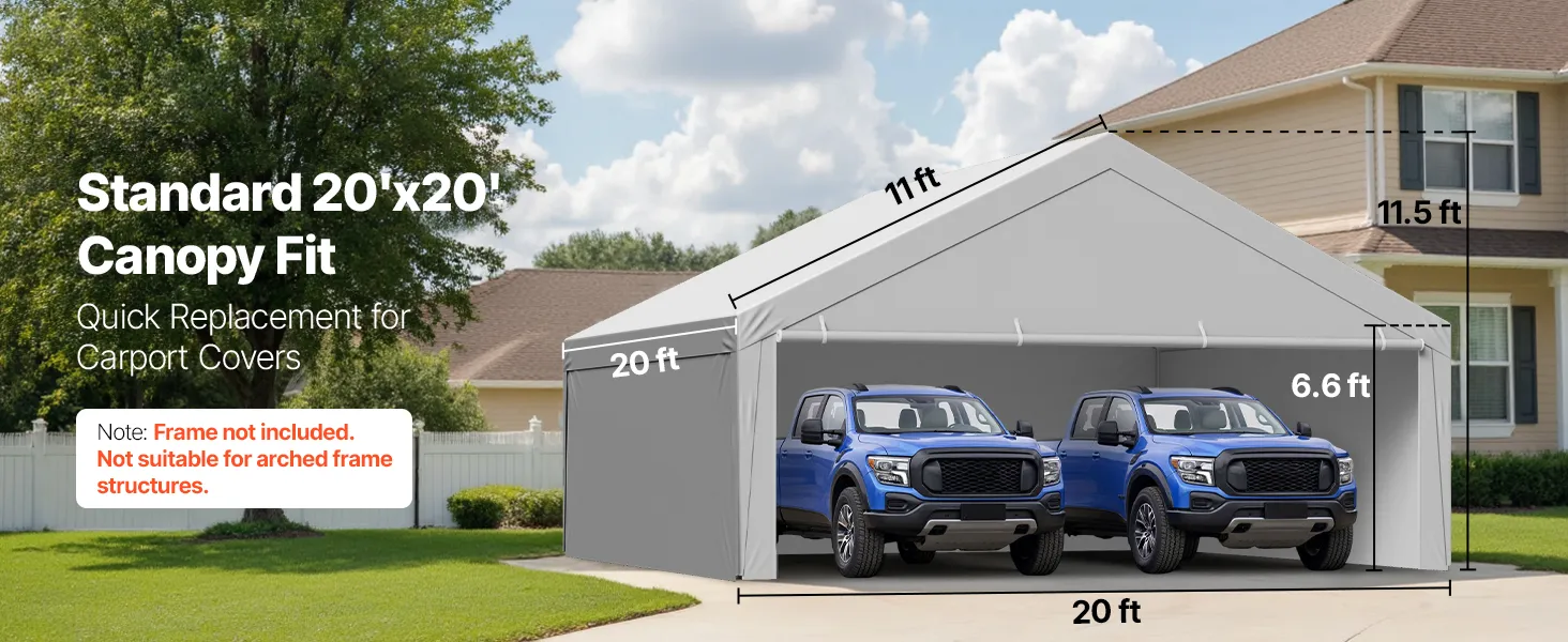 Štandardný náhradný kryt prístrešku pre auto s rozmermi 20 × 20 stôp je navrhnutý tak, aby pasoval na väčšinu rámov prístrešku pre auto. Na jednoduchú výmenu nie je potrebné žiadne orezávanie ani úpravy. Je ideálny na rýchlu výmenu pre domácich majstrov.