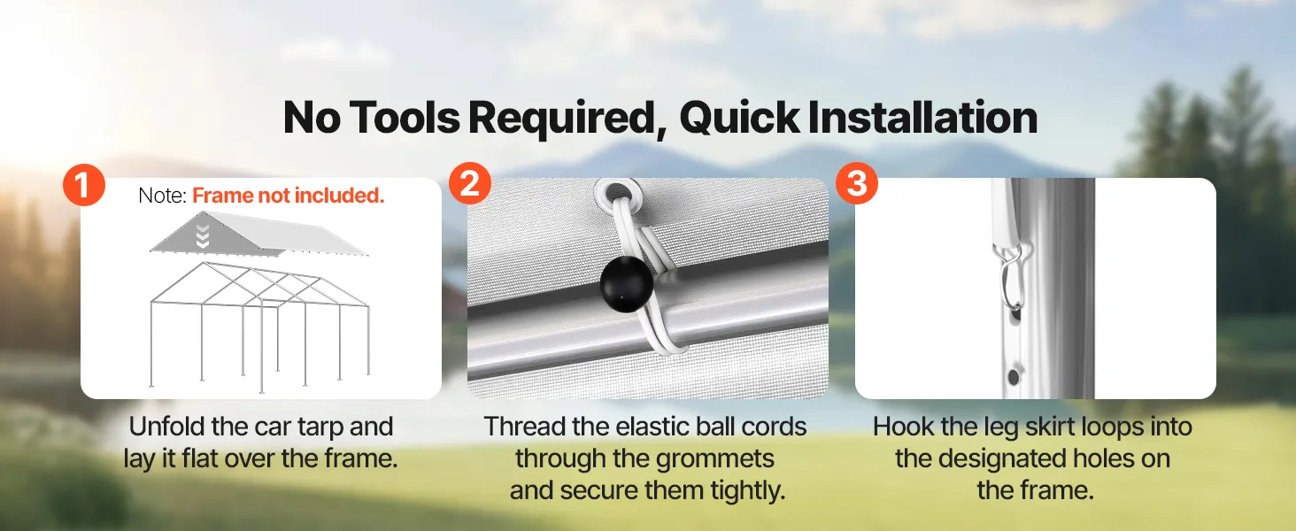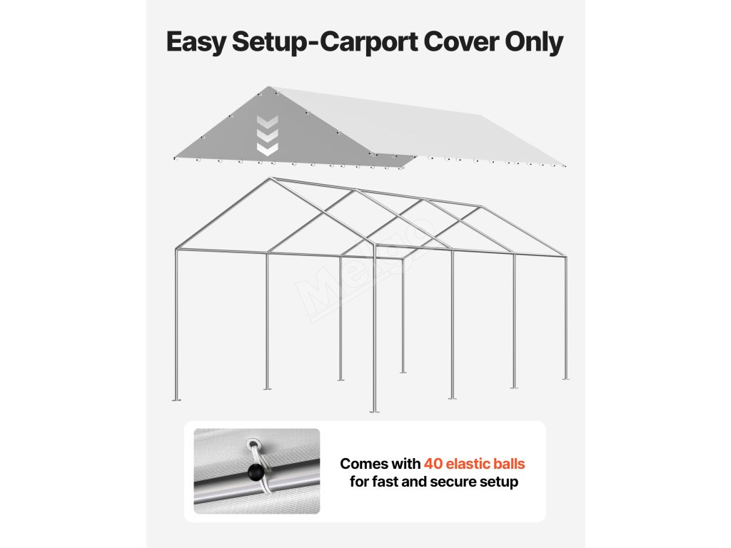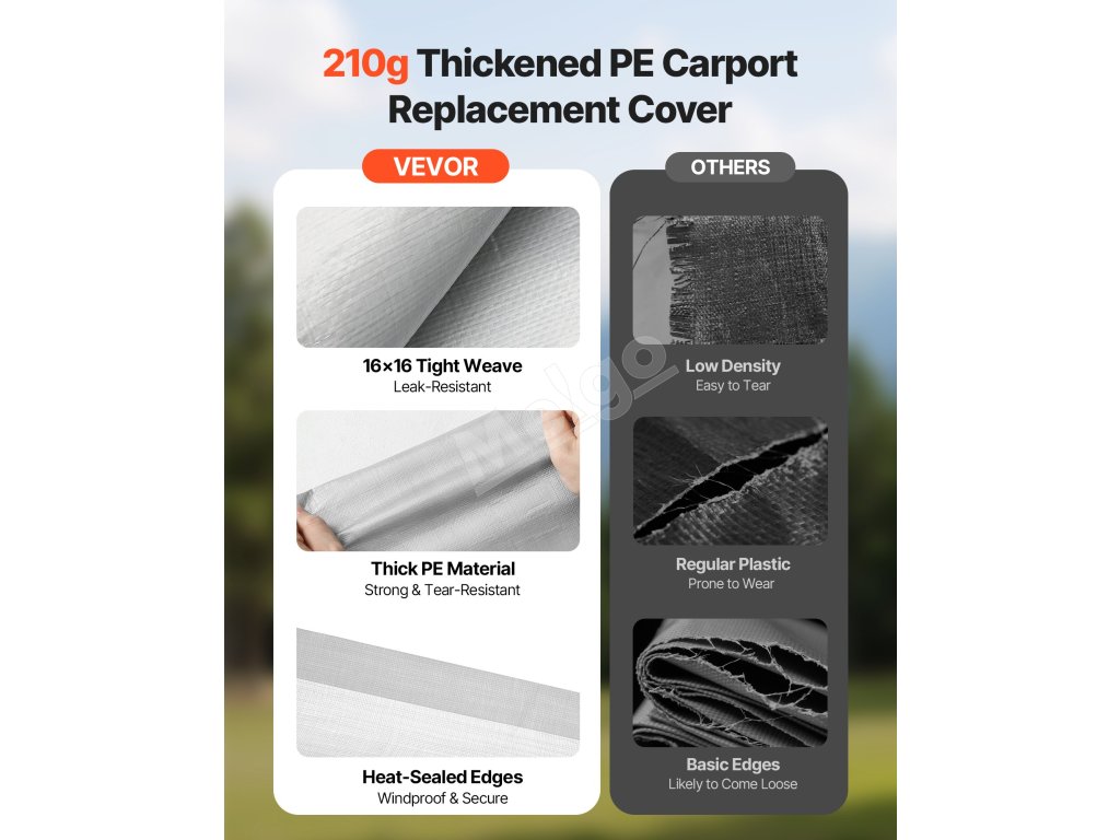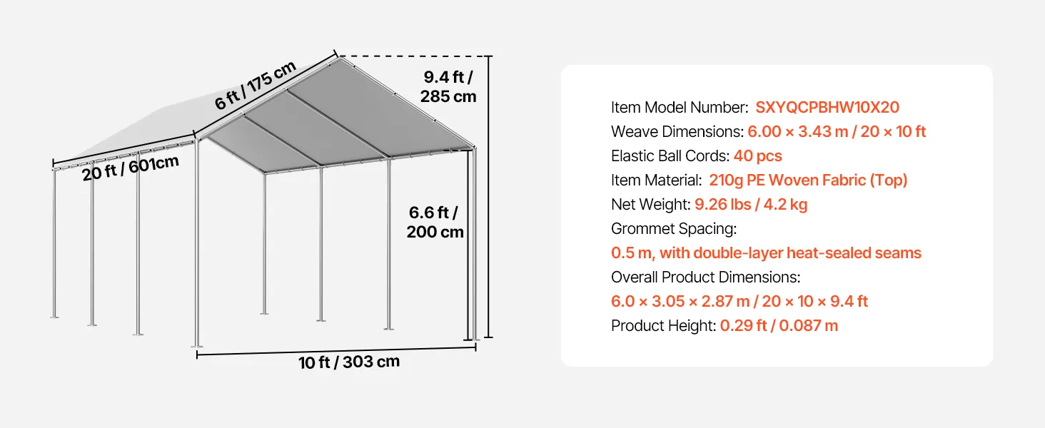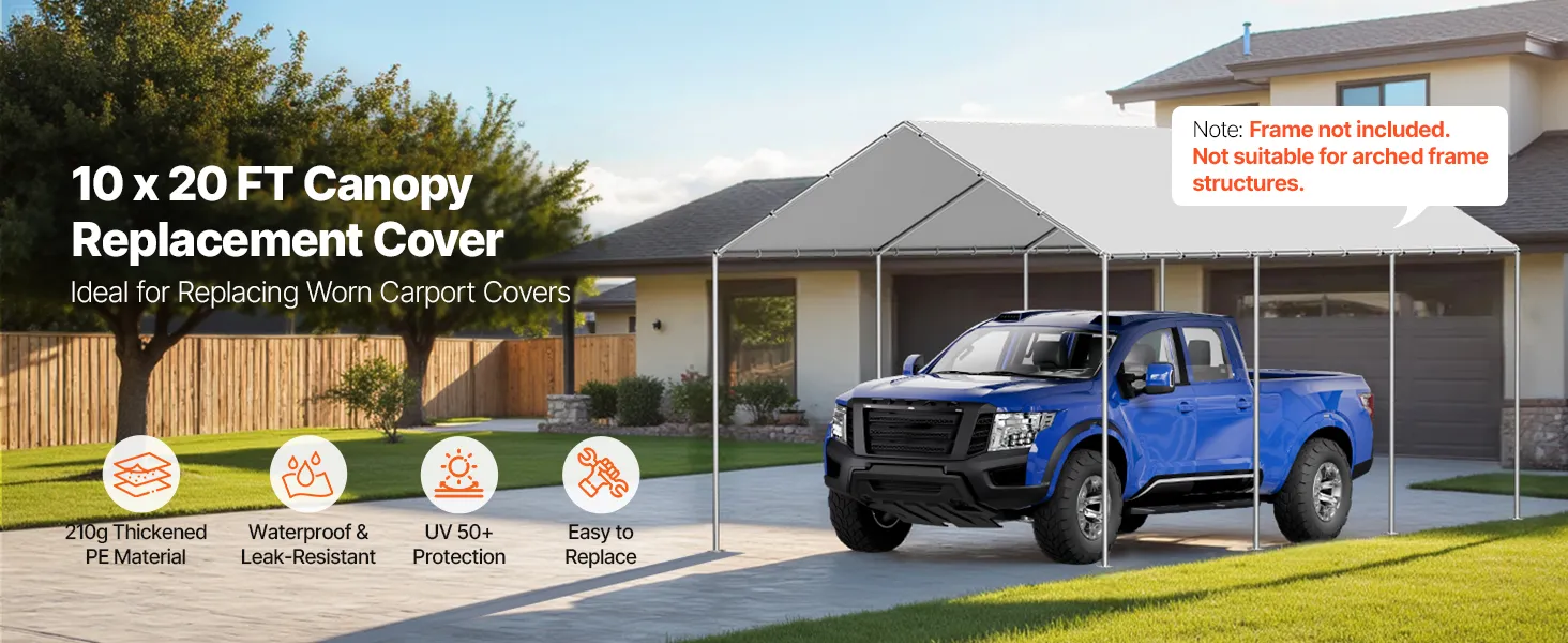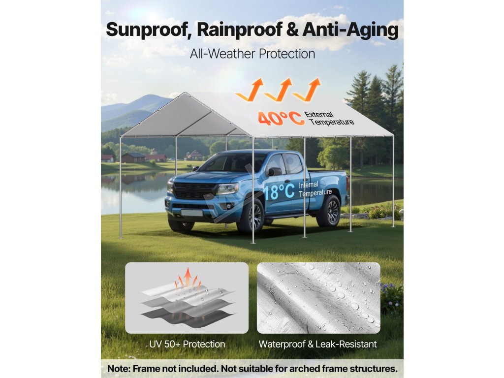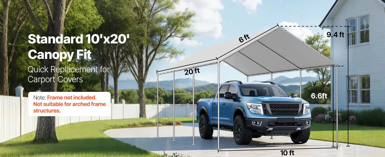 Štandardný náhradný kryt prístrešku pre auto s rozmermi 10 × 20 stôp je navrhnutý tak, aby pasoval na väčšinu rámov prístrešku pre auto. Na jednoduchú výmenu nie je potrebné žiadne orezávanie ani úpravy. Je ideálny na rýchlu výmenu pre domácich majstrov.