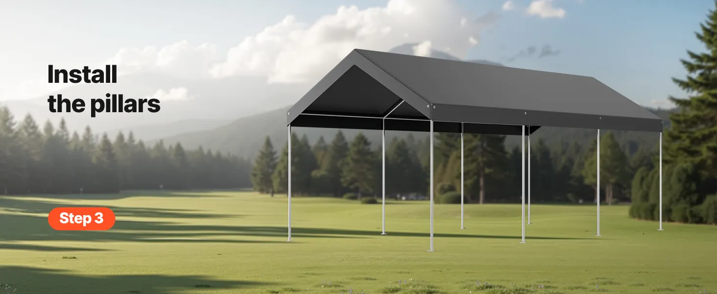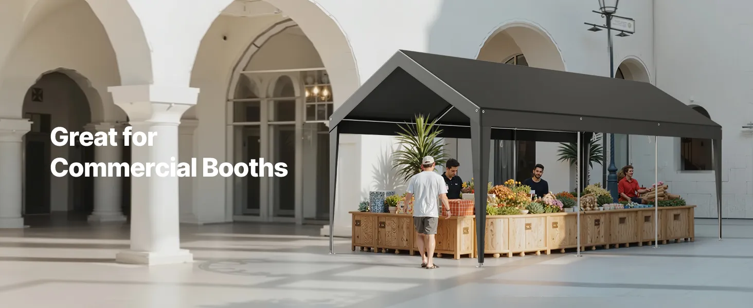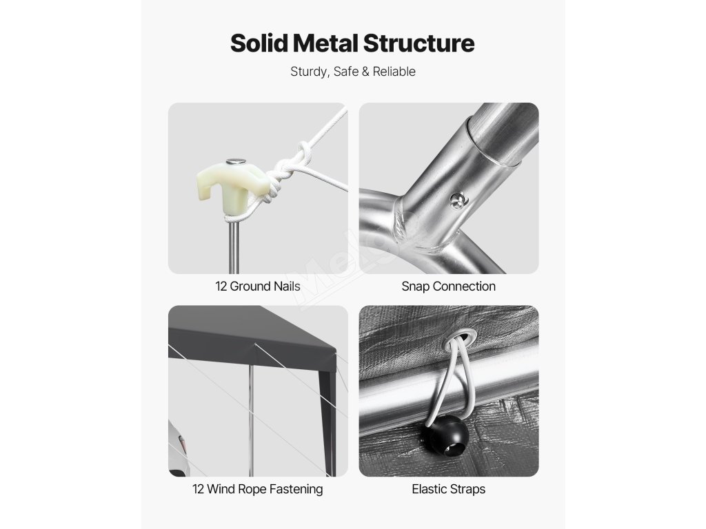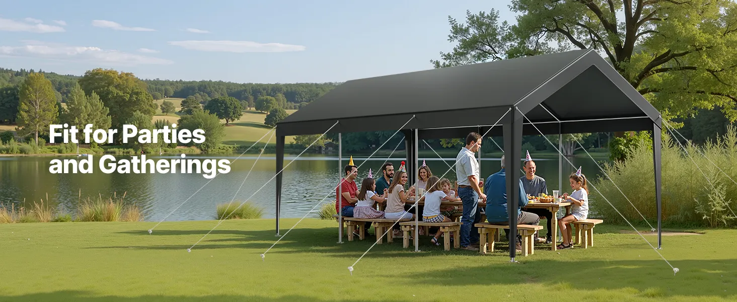 Prenosná garáž ponúka plochu 10 x 20 stôp s pozinkovaným oceľovým rámom a dvojvrstvovou plachtou s PE povlakom, ktorá poskytuje ochranu pred slnkom, nepremokavosť a odolnosť proti vetru na ochranu vášho vozidla a vonkajších predmetov. Rýchlo sa montuje a je skonštruovaný pre dlhú životnosť, ako garáž, skladovací priestor, priestor pre vonkajšie aktivity.