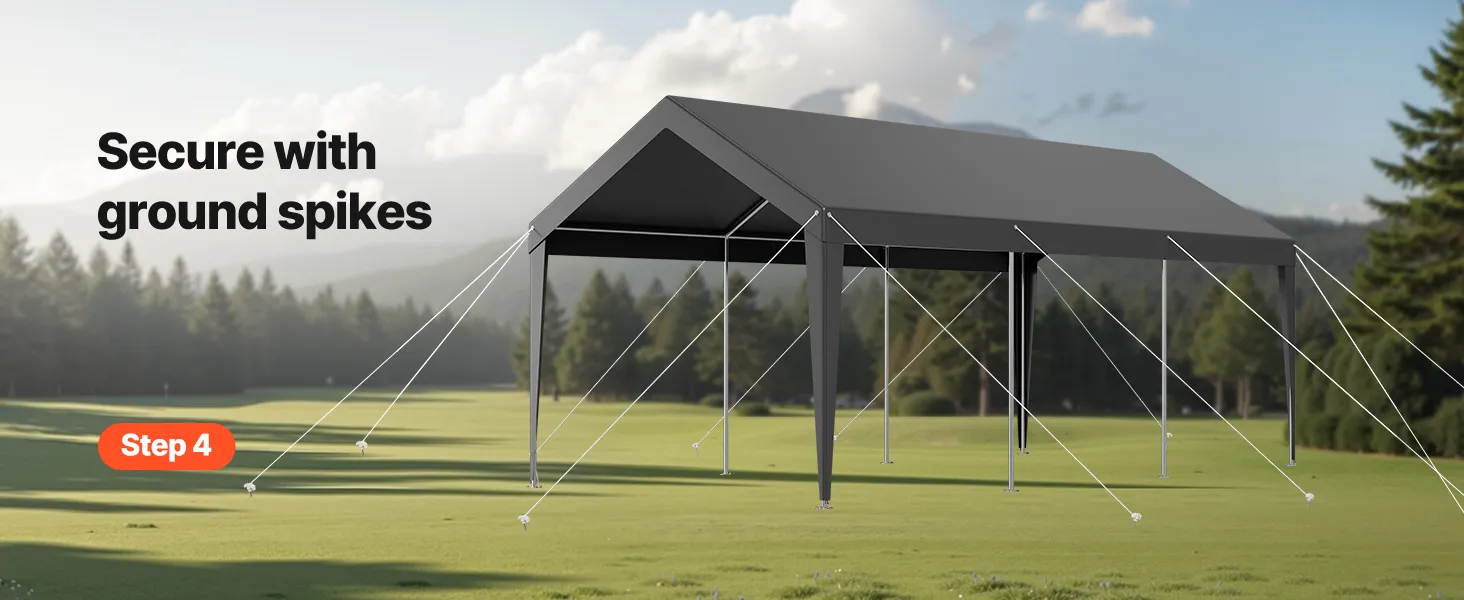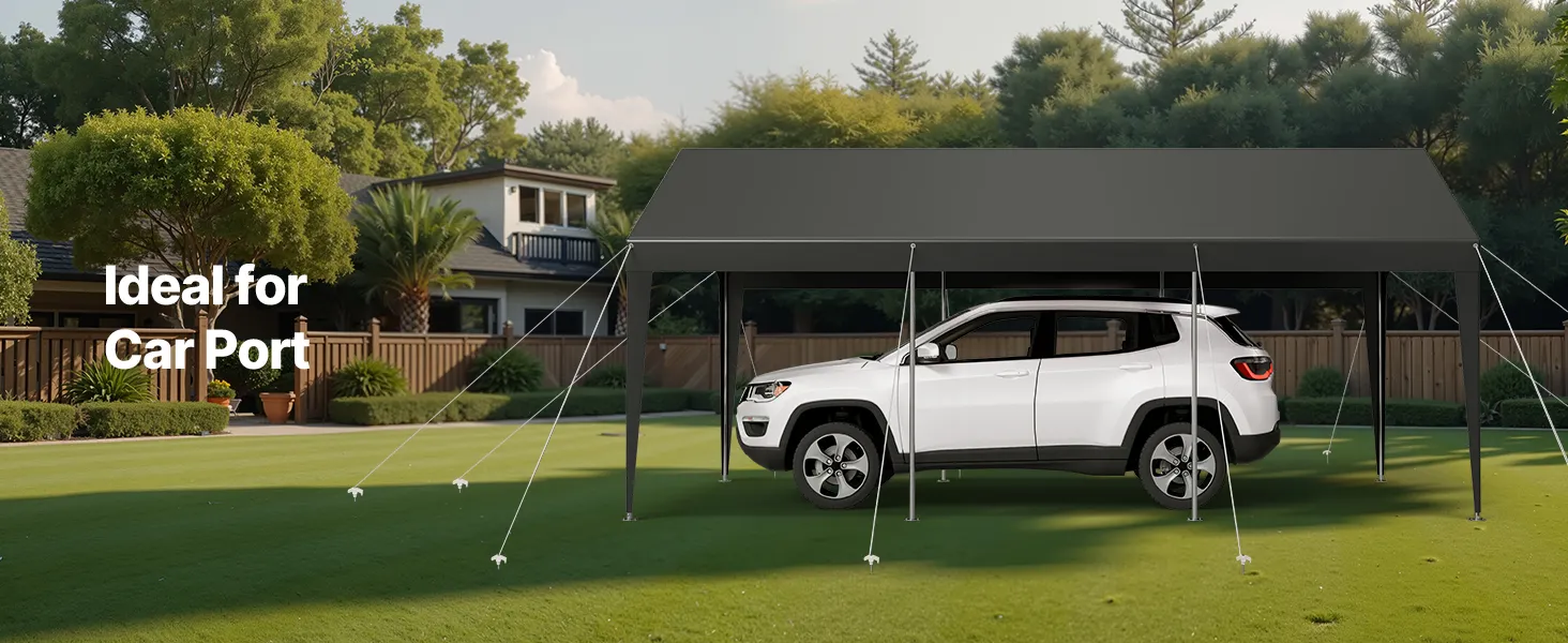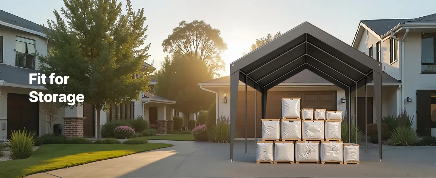 Garáž Instant Garage vyrobená z vysokokvalitnej PE tkaniny poskytuje ochranu za každého počasia, chráni pred slnečnými lúčmi, dažďom, snehom a piesočnými búrkami. Či už je horúce slnko, silný dážď alebo zimný sneh, vaša garáž zostane suchá a čistá a poskytne ochranu vášmu vozidlu.