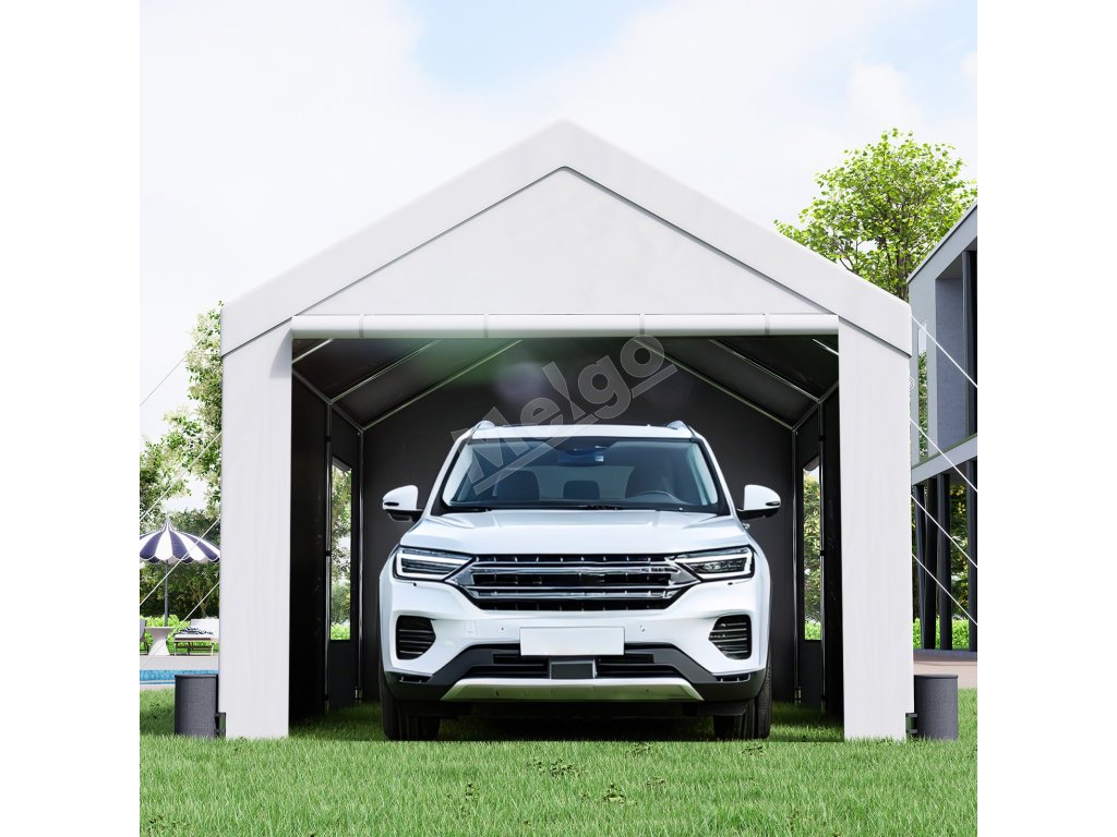 Tento 12 x 20 ft ťažký prístrešok na auto má osem robustných 38 mm pozinkovaných oceľových rúrok a jedinečnú dvojstennú konštrukciu s hrúbkou steny 0,8 mm. Povrchová antikorózna prášková farba zabraňuje praskaniu, odlupovaniu, hrdzi a korózii. Osem výstuh spevňuje konštrukciu, aby sa zabránilo chveniu aj vo veternom a daždivom počasí.