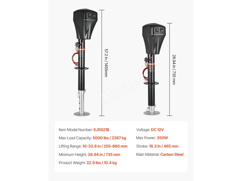 Tento výkonný zdvihák jazyka je skonštruovaný z odolnej uhlíkovej ocele, pozinkovaných rúrok a 12 V motora na jednosmerný prúd a je konštruovaný tak, aby vydržal. Čierny práškový náter a pozinkovanie zabezpečujú vynikajúcu odolnosť proti korózii, čím predlžujú jeho životnosť.