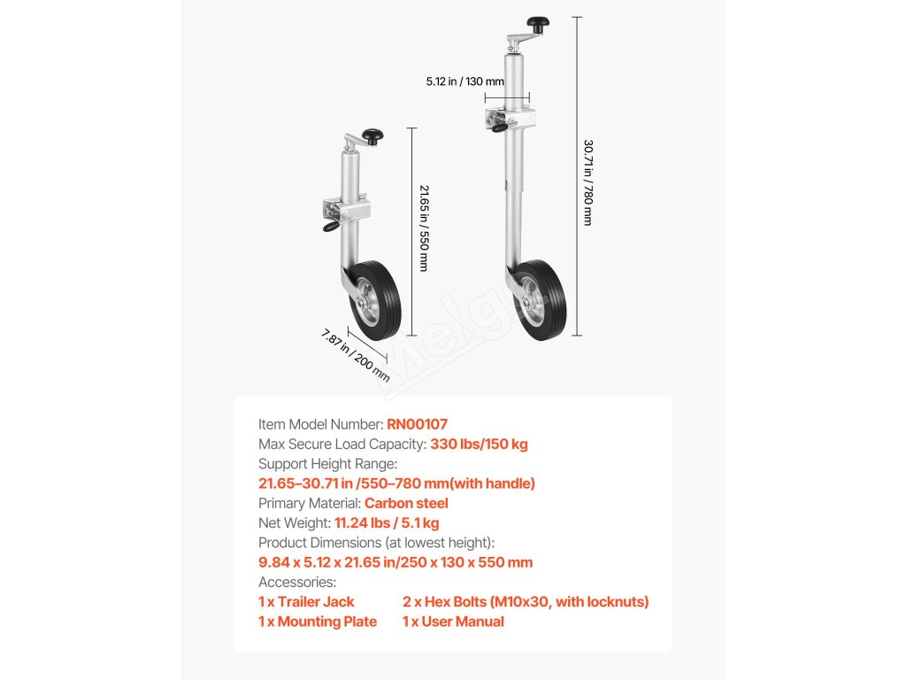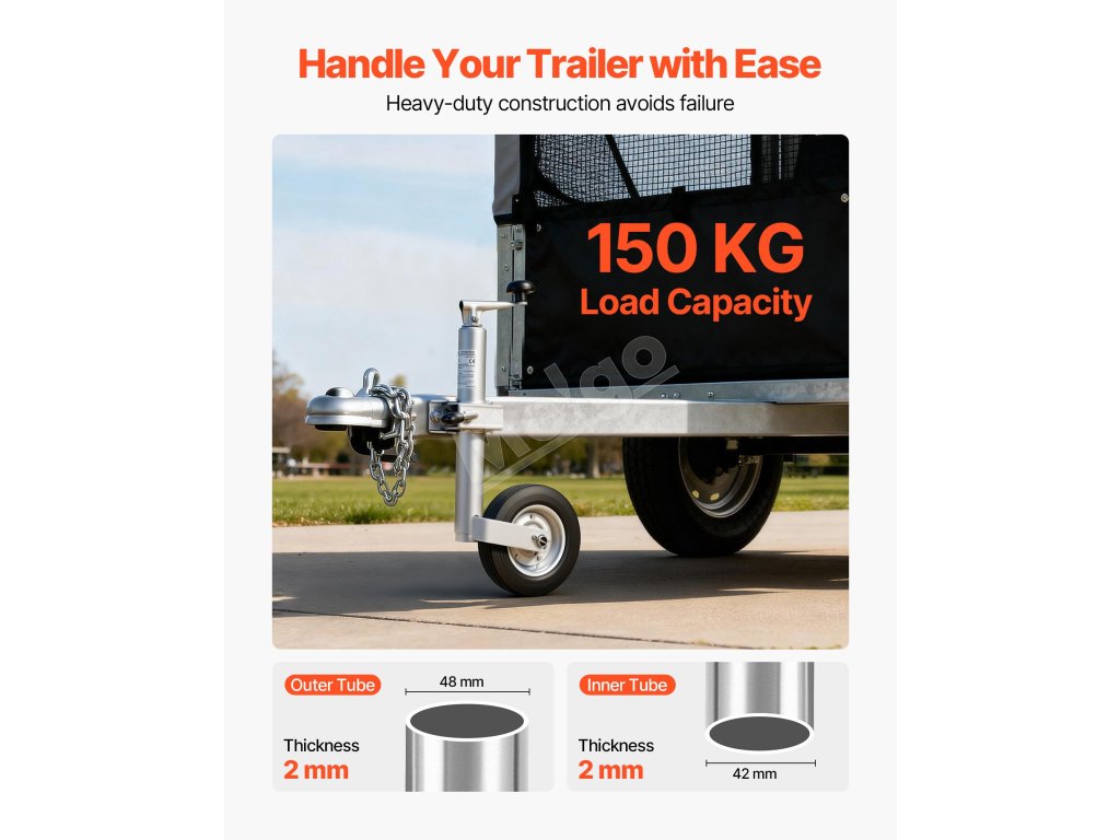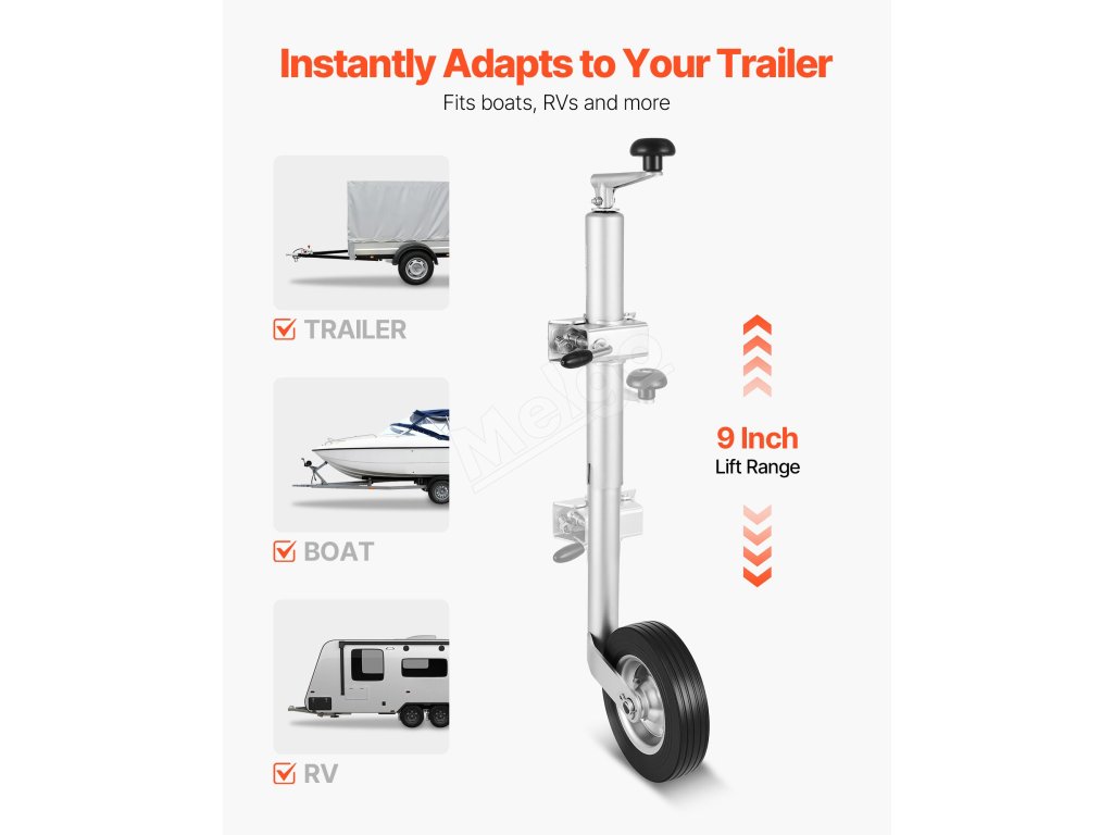 Tento vysokovýkonný zdvihák prívesu s kolieskom je váš stabilný partner pre prívesy na člny, obytné vozidlá, kone a úžitkové prívesy. Unesie až 330 lb, nastavuje výšku na flexibilné zdvíhanie a je vybavený dvojitou ochranou proti korózii.